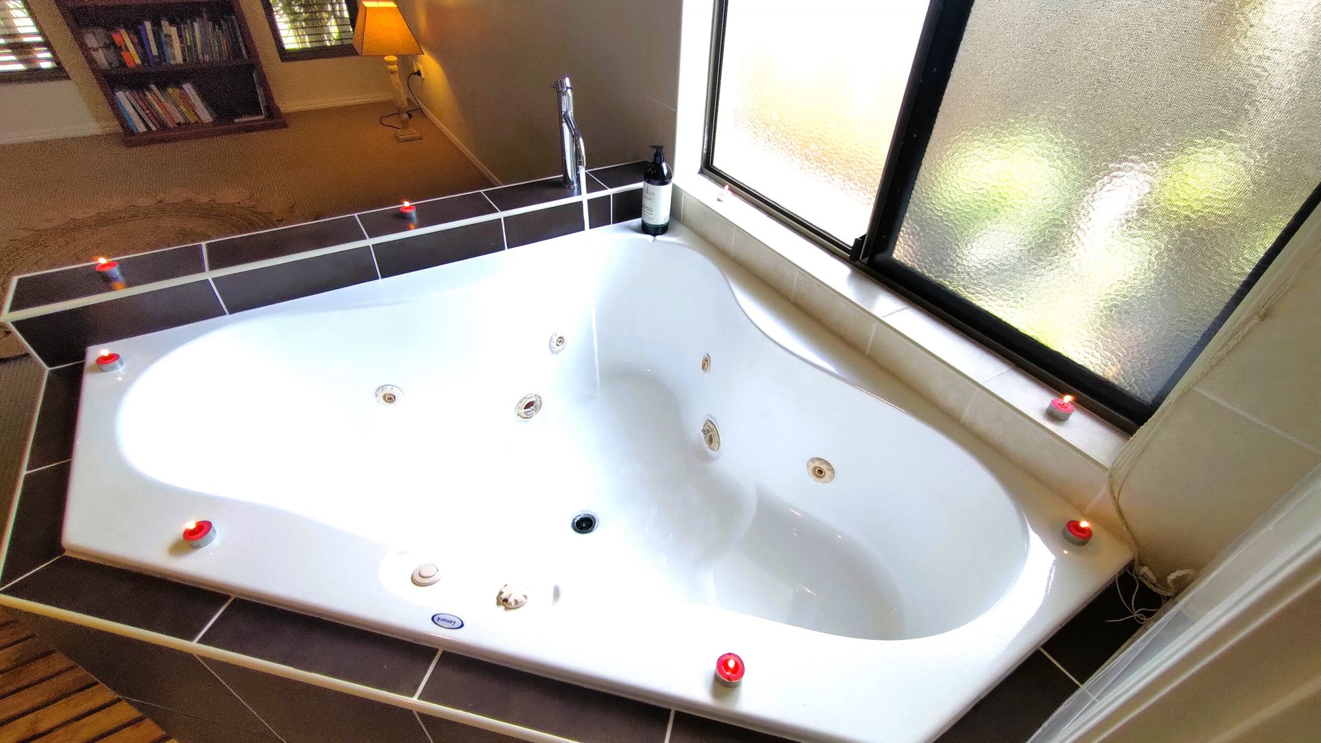 Step out and you will be invited by a over sized deck that leads to your very own privately enclosed spa large enough to accommodate 4 adults and comes with amazing features including a personal sound system where you can relax and listen to your very own private collection via Bluetooth or USB.