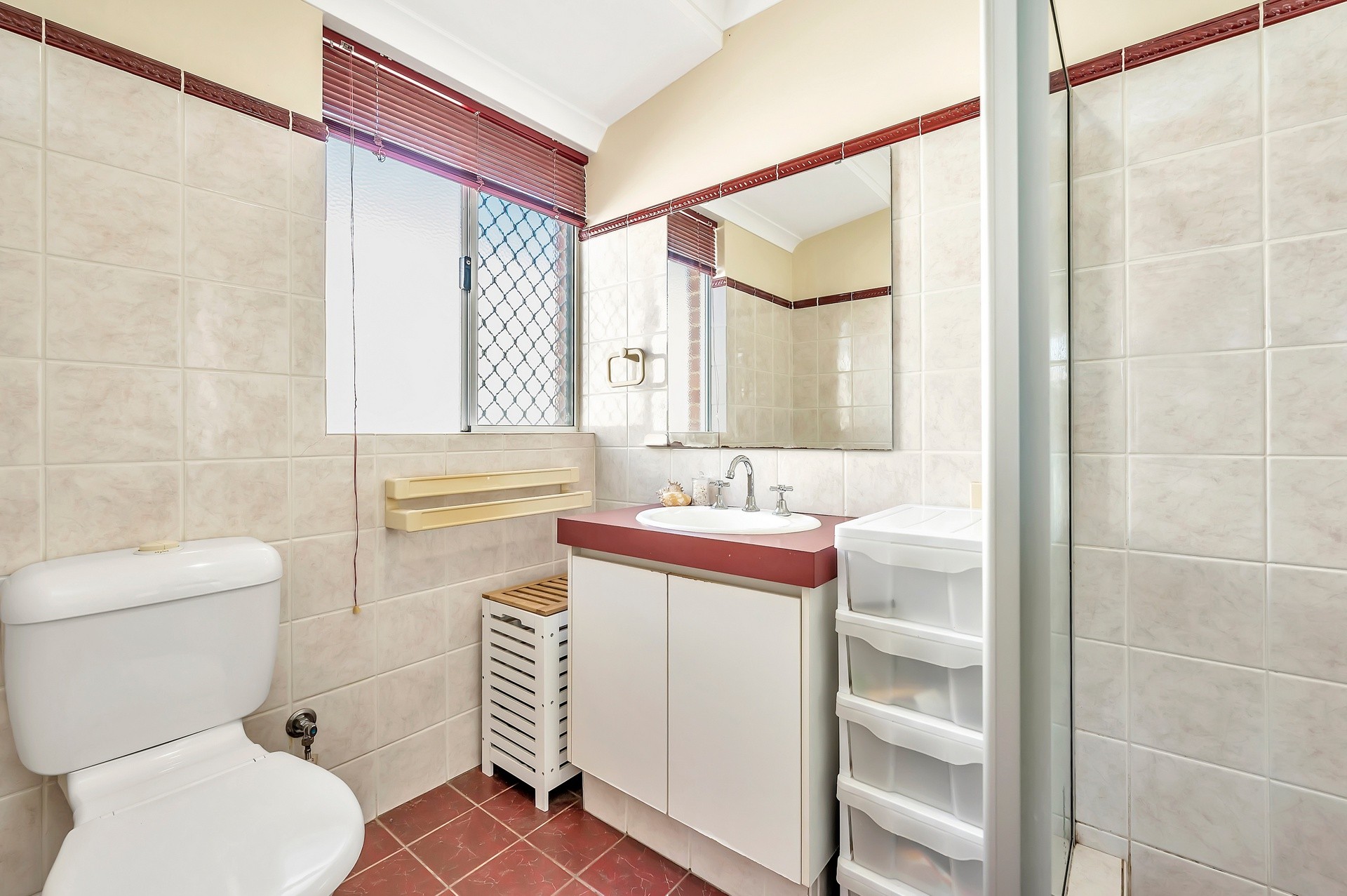 The main bathroom servicing the minor bedrooms is well laid out, with a glass-screen shower and bathtub. There is a separate toilet located off the laundry.