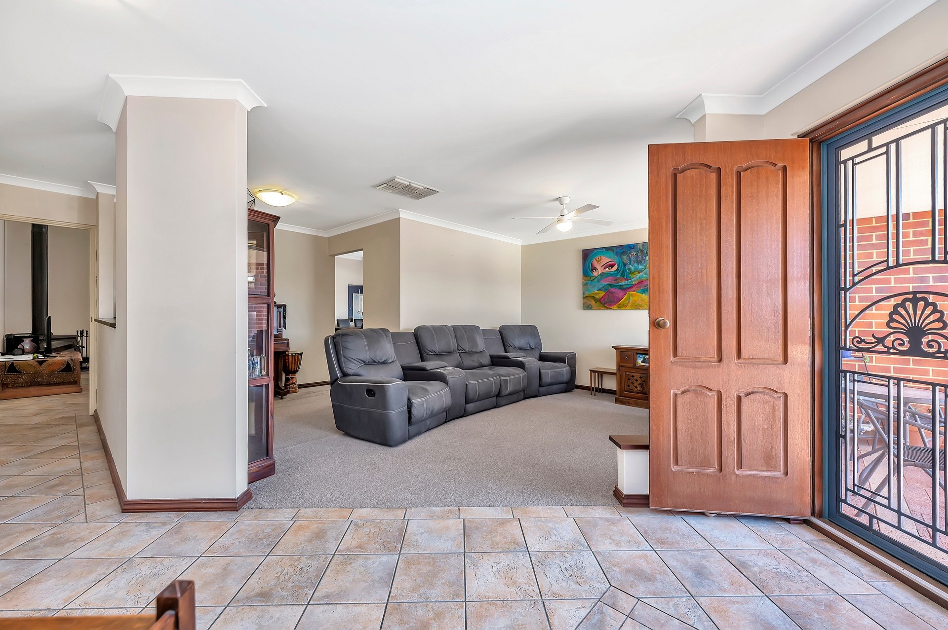 Directly off the living room is the additional games / activity / rumpus room, carpeted and has large floor to ceiling windows. This enormous amount of extra space adds another element of flexible living choices for the growing family.