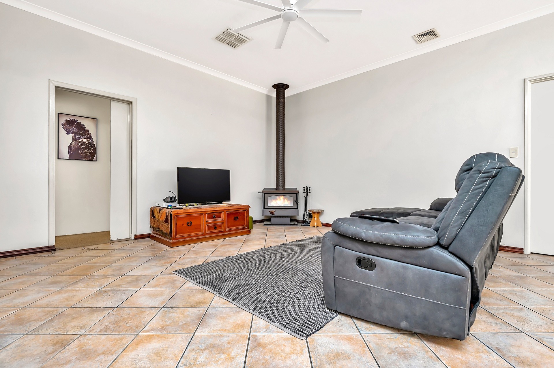 - ceiling fans in all bedrooms and extra-large fan in living room