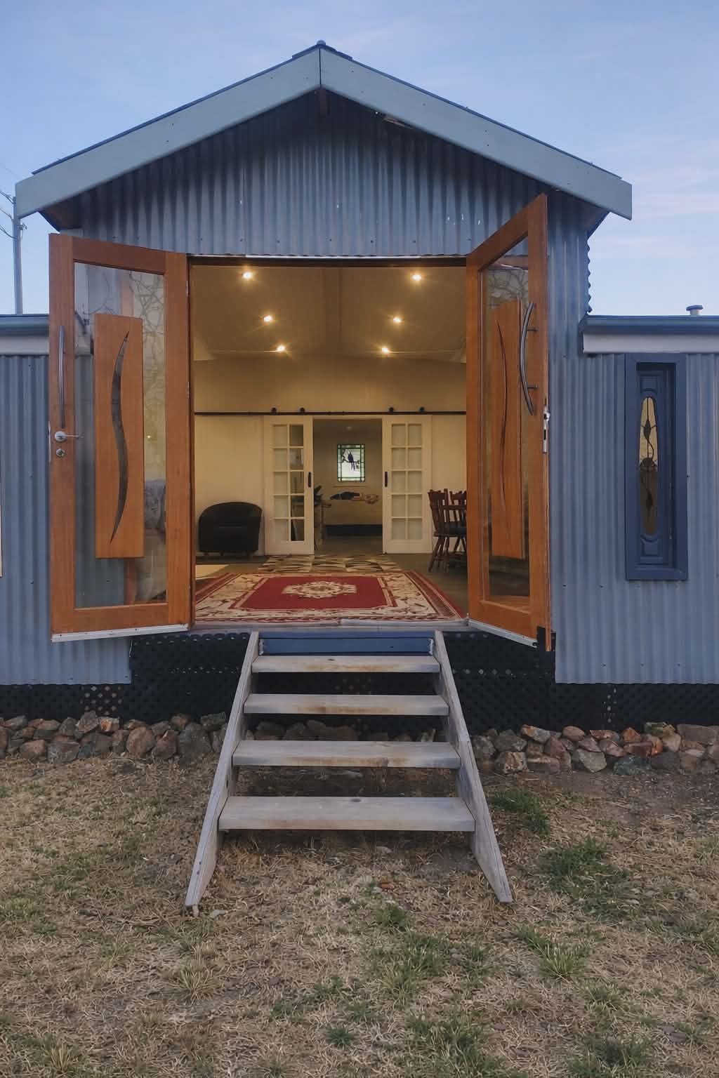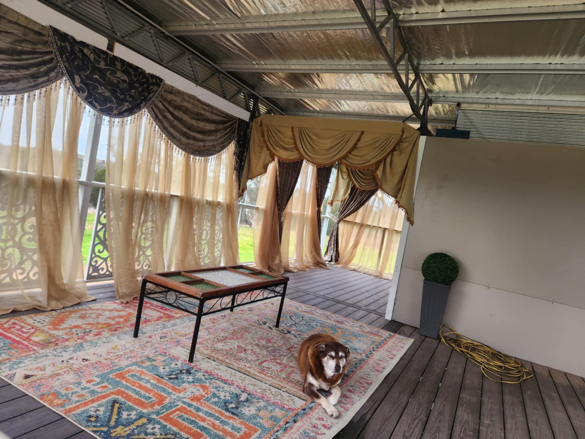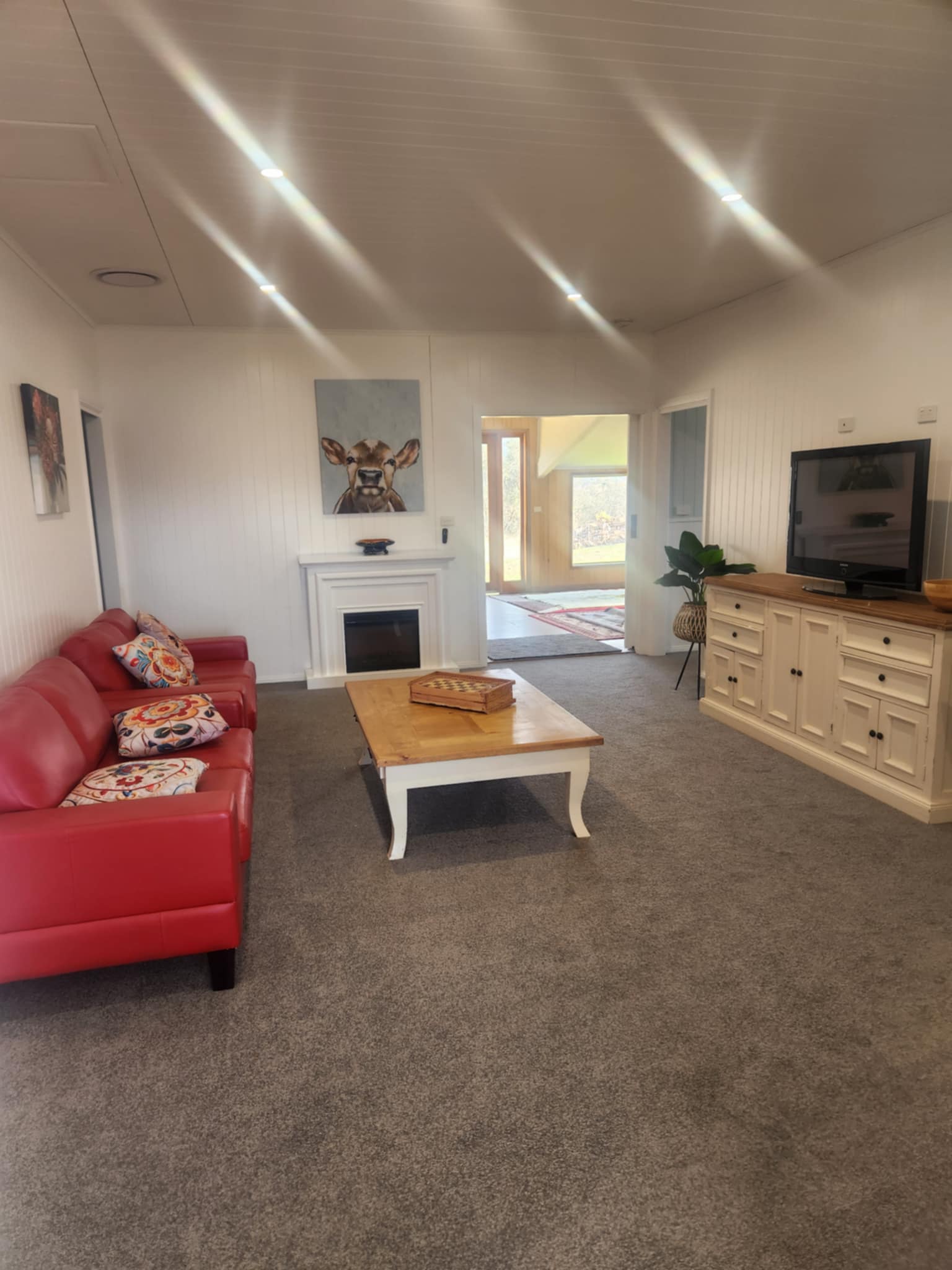 Shearing shed has been converted to a very modern three bedroom, modern kitchen, large bathroom and toilet, two living areas with a outlook over the paddocks towards the mountains. 6 bay car area. Antique led lighting windows and original posts from shearing shed are highlighted throughout this welcoming building.