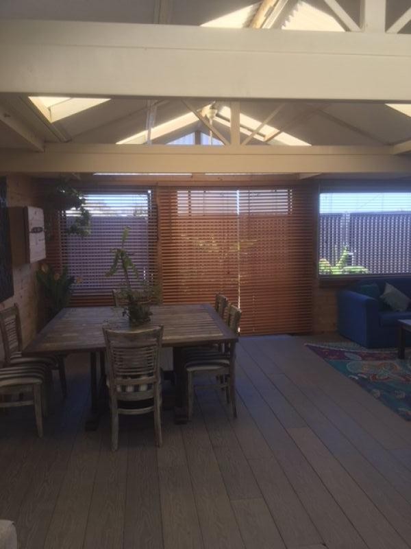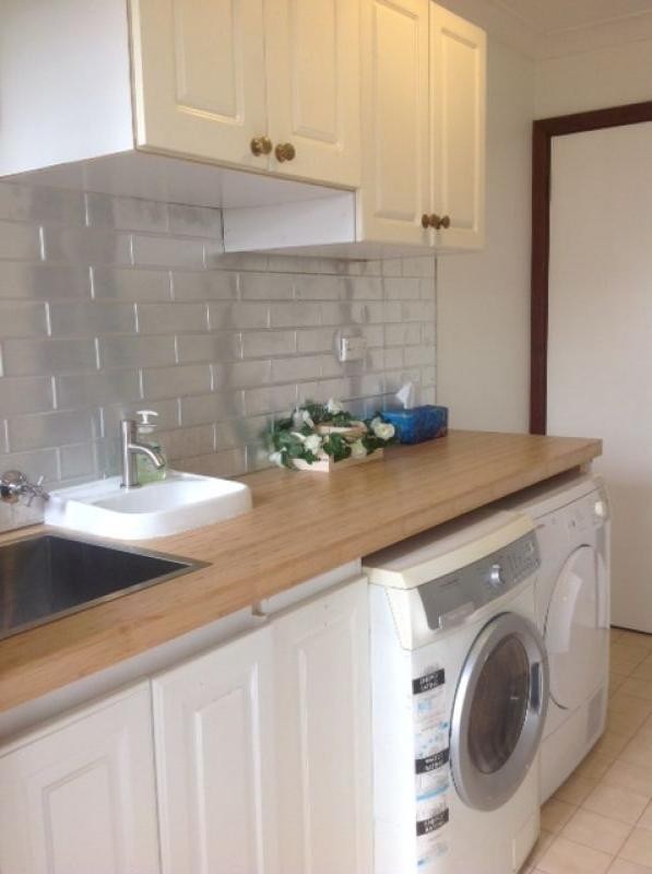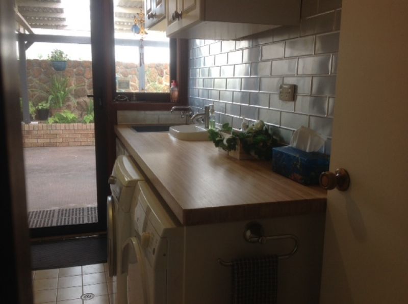 Renovated large laundry with plenty of storage, bamboo timber benchtop and built-in linen press and separate toilet leads through to the enclosed carport. New Hot Water System.