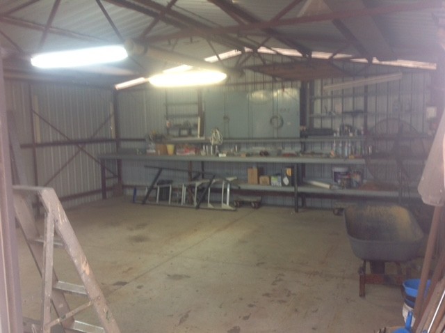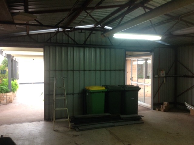At rear of the enclosed carport is a lockup powered 7mx7m workshop with two large sliding doors. Lots of storage for the home handyman.