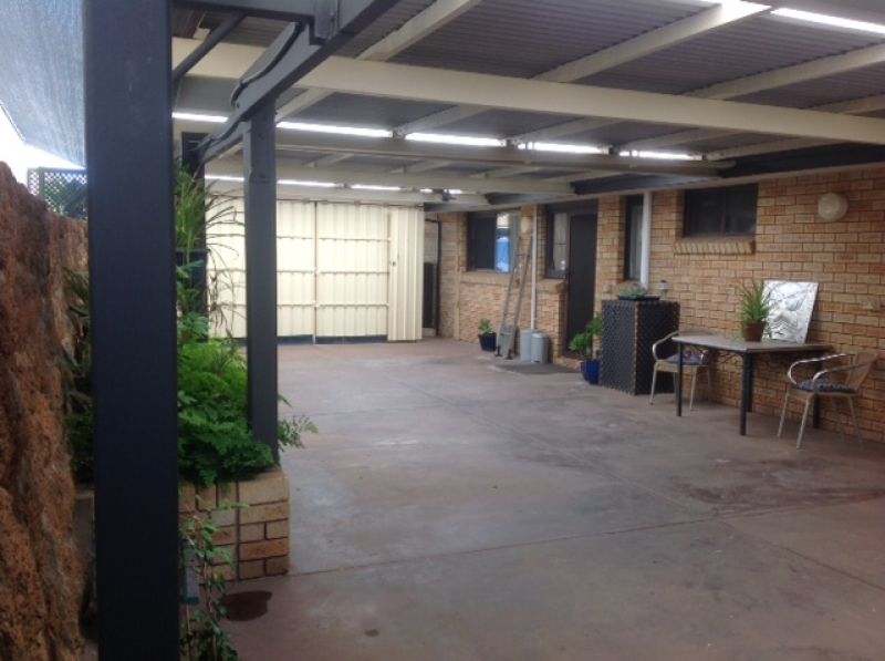 A new carport on driveway leads through a manual tilt door to a large enclosed 4 plus Car carport. Great covered area for boat or caravan.