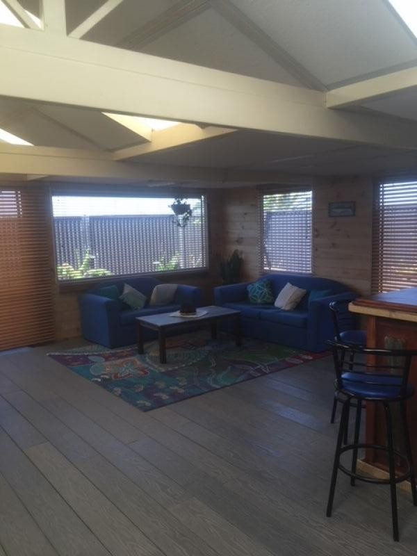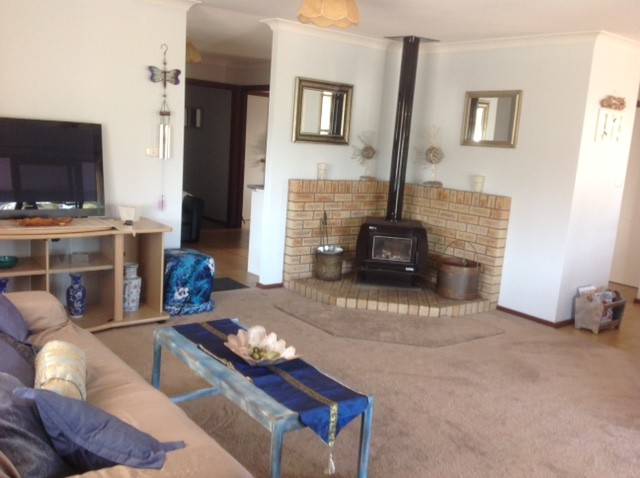 Large lounge area with carpet & wood fire for the cooler winter months and 8kw reverse cycle air conditioner to keep you warm in the winter or cool in the summer months. Front sliding door to allow the cool sea breeze in over summer months and enjoy the ocean views.