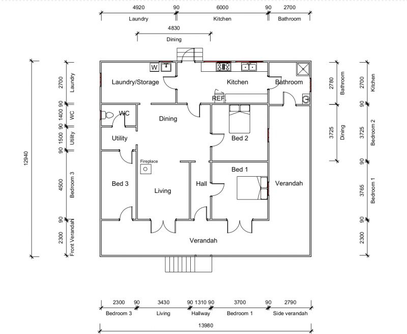 Big 1012 Sq.m corner block . Verandahs on two sides .