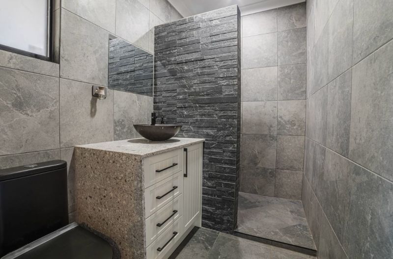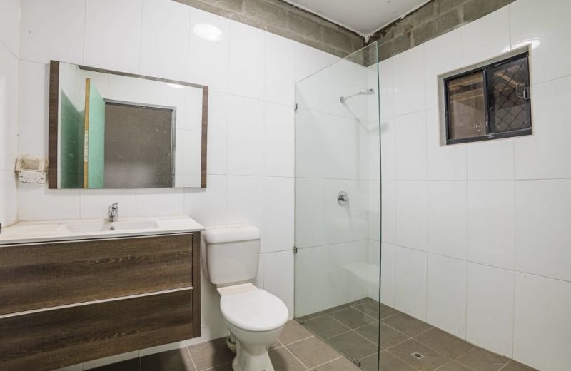 2 bedrooms on the ground level have been completed with a painted rendered finish, vinyl flooring and air conditioning.