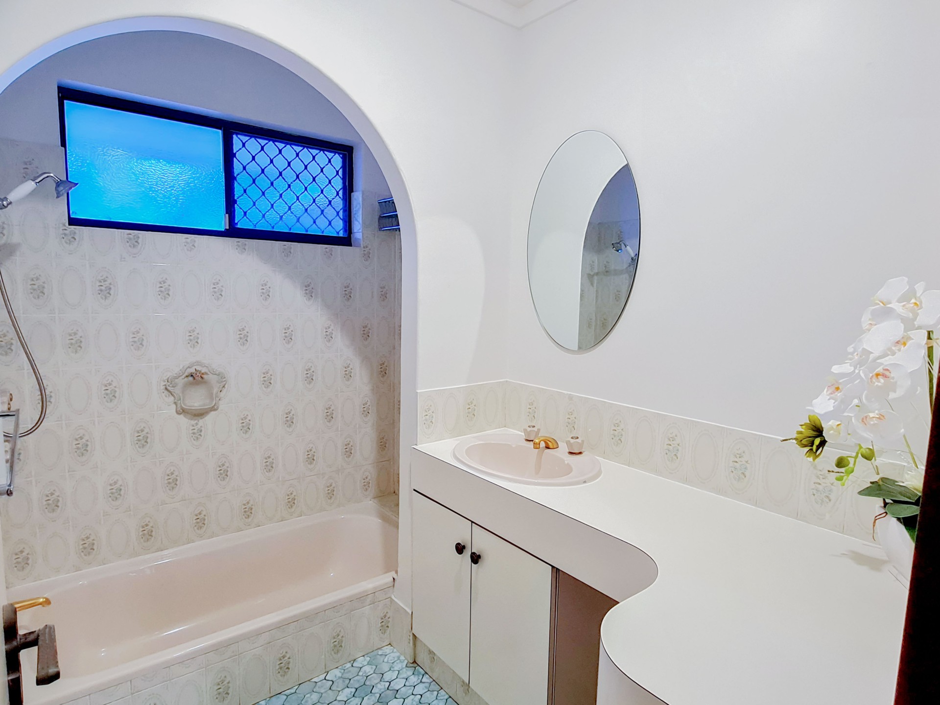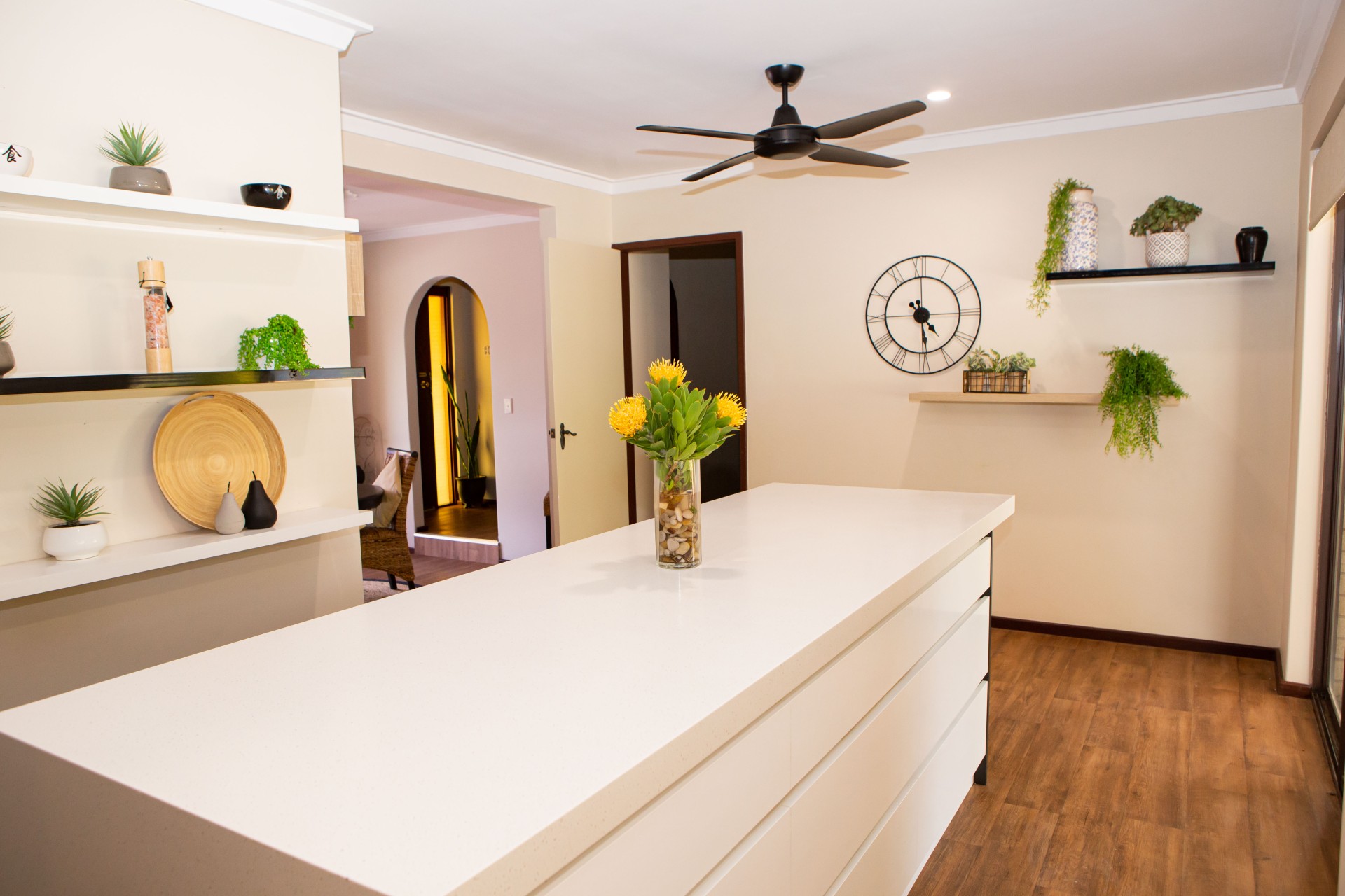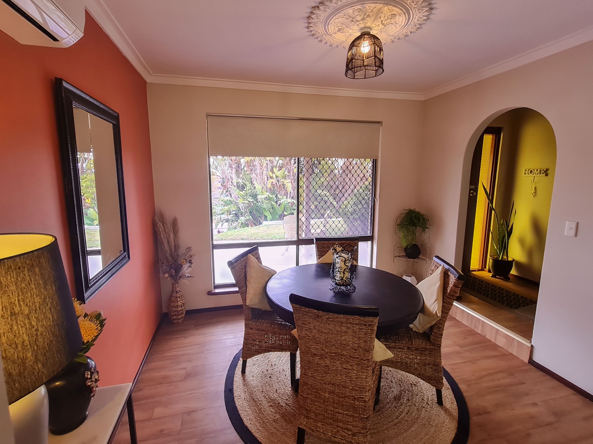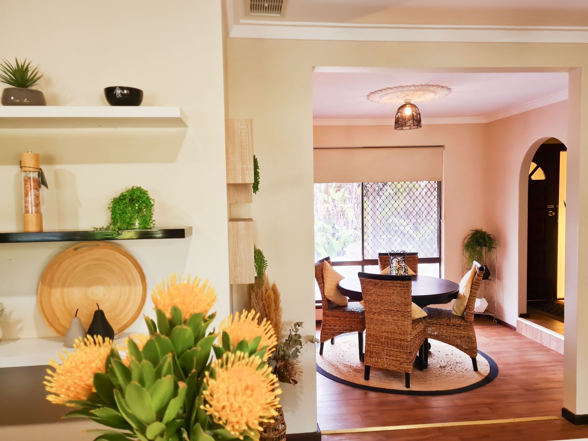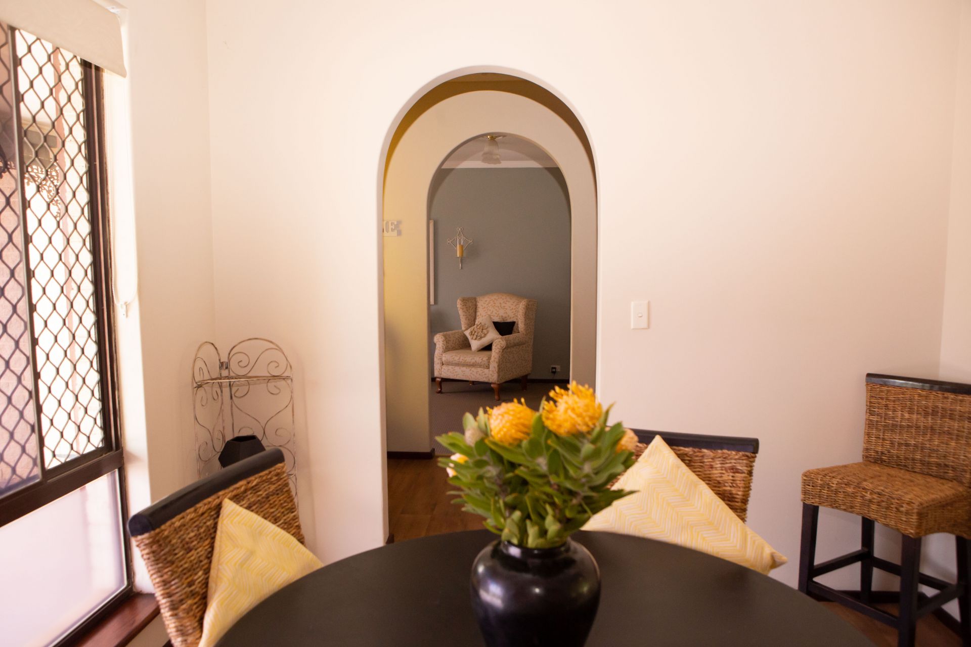 When you enter you will immediately feel the 70's charm with the arched leadlight feature jarrah swinging door, separating the entry to the main house. To the left a lounge area with floor to ceiling bay window inviting the views in, to the right a dining room leading you into the near new renovated modern kitchen, with an amazing huge Island bench, stainless steel appliances, gas stove top, fan forced oven and plenty of storage with soft closed drawers.
