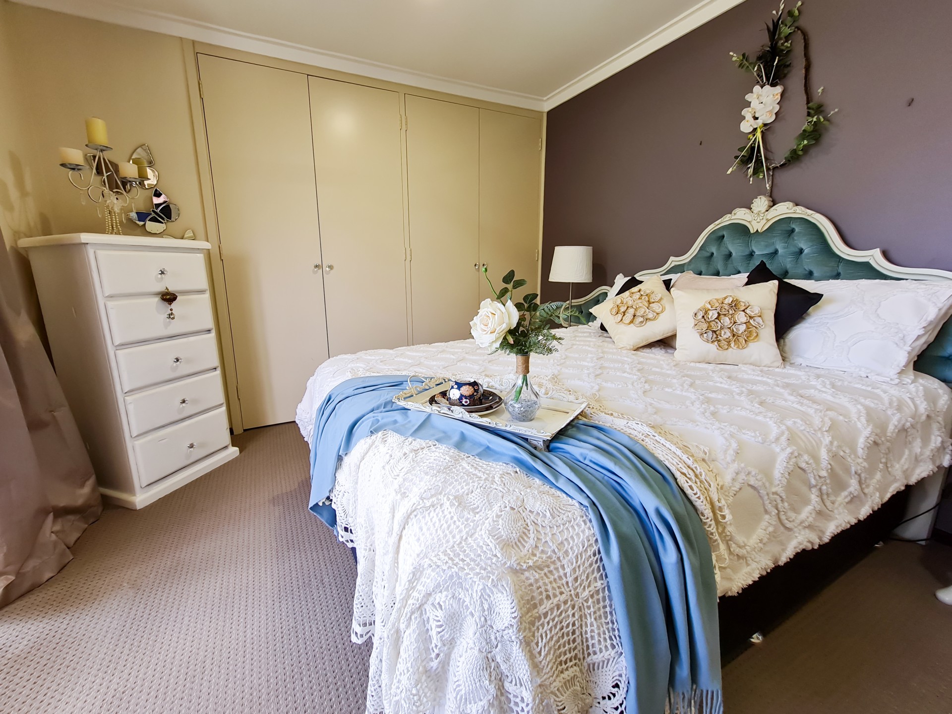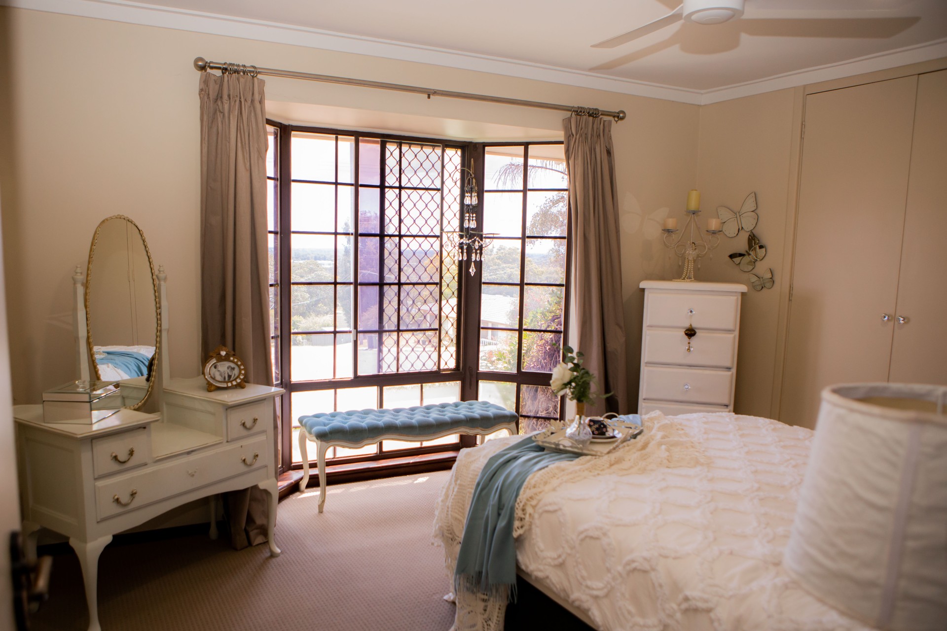 The main bedroom has a beautiful floor to ceiling bay window drawing in the views, imagine being snuggled, cozy in bed watching the storms rolling in from the coast on a cold wintery morning, there's plenty of storage with two double built-in robes (his & her)
