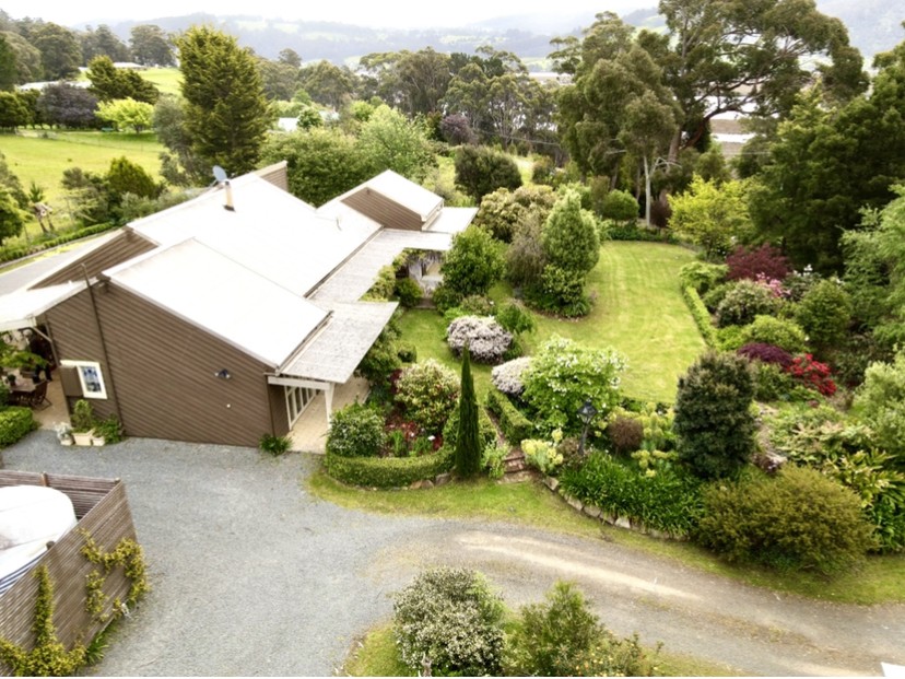 Architecturally designed beautiful home. Light-filled rooms overlooking a mature gorgeous garden. In a sought-after Huon Valley address on the Cygnet Coast road which winds along the Eastern side of the Huon river in Cradoc.