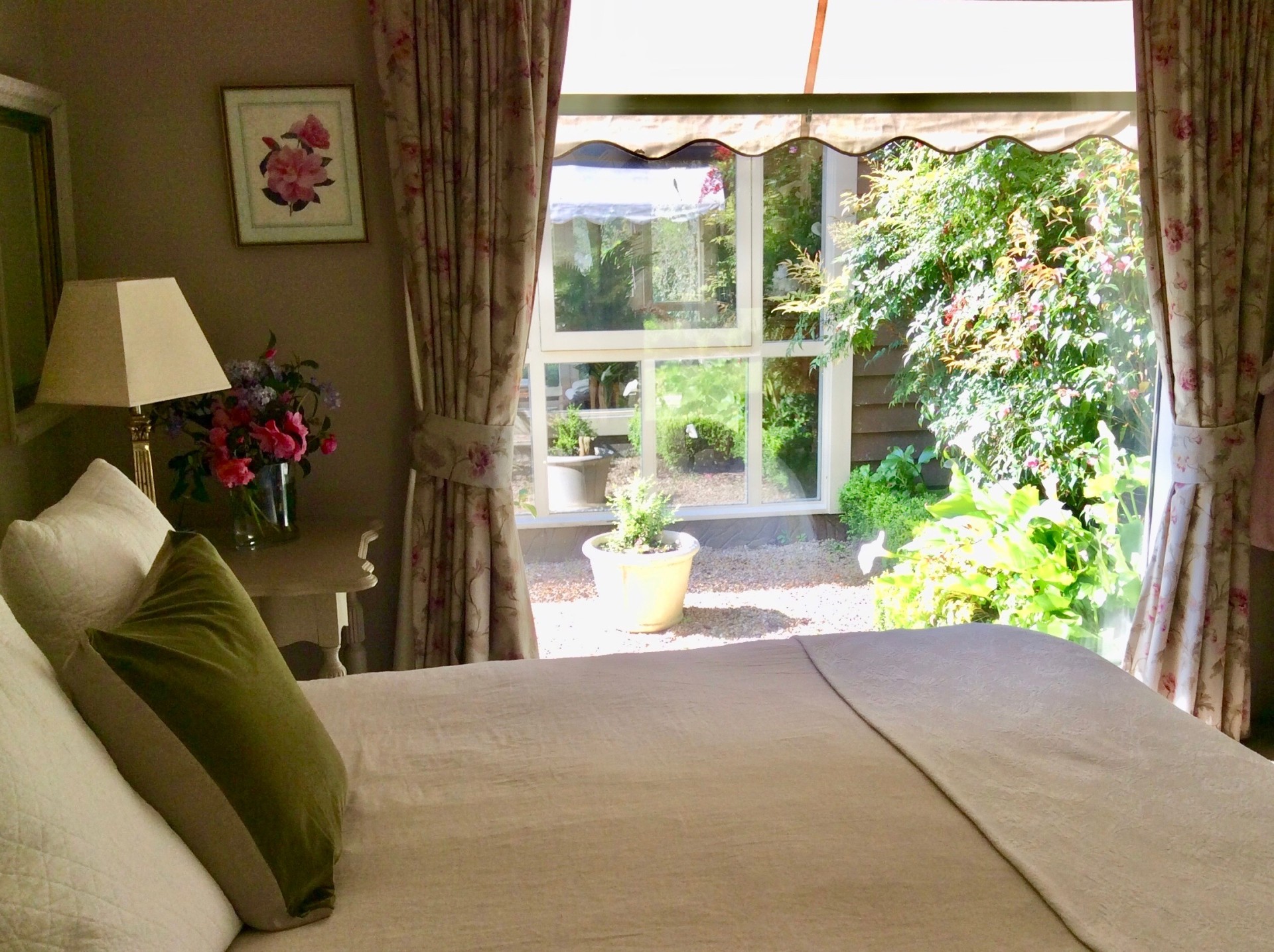 There are three bedrooms, the master bedroom with handcrafted ensuite at one end of the home and the other two bedrooms and the second bathroom at the other end of the home, perfect for guest privacy or children's wing. Each bedroom features large picture windows to enjoy the lovely garden view.