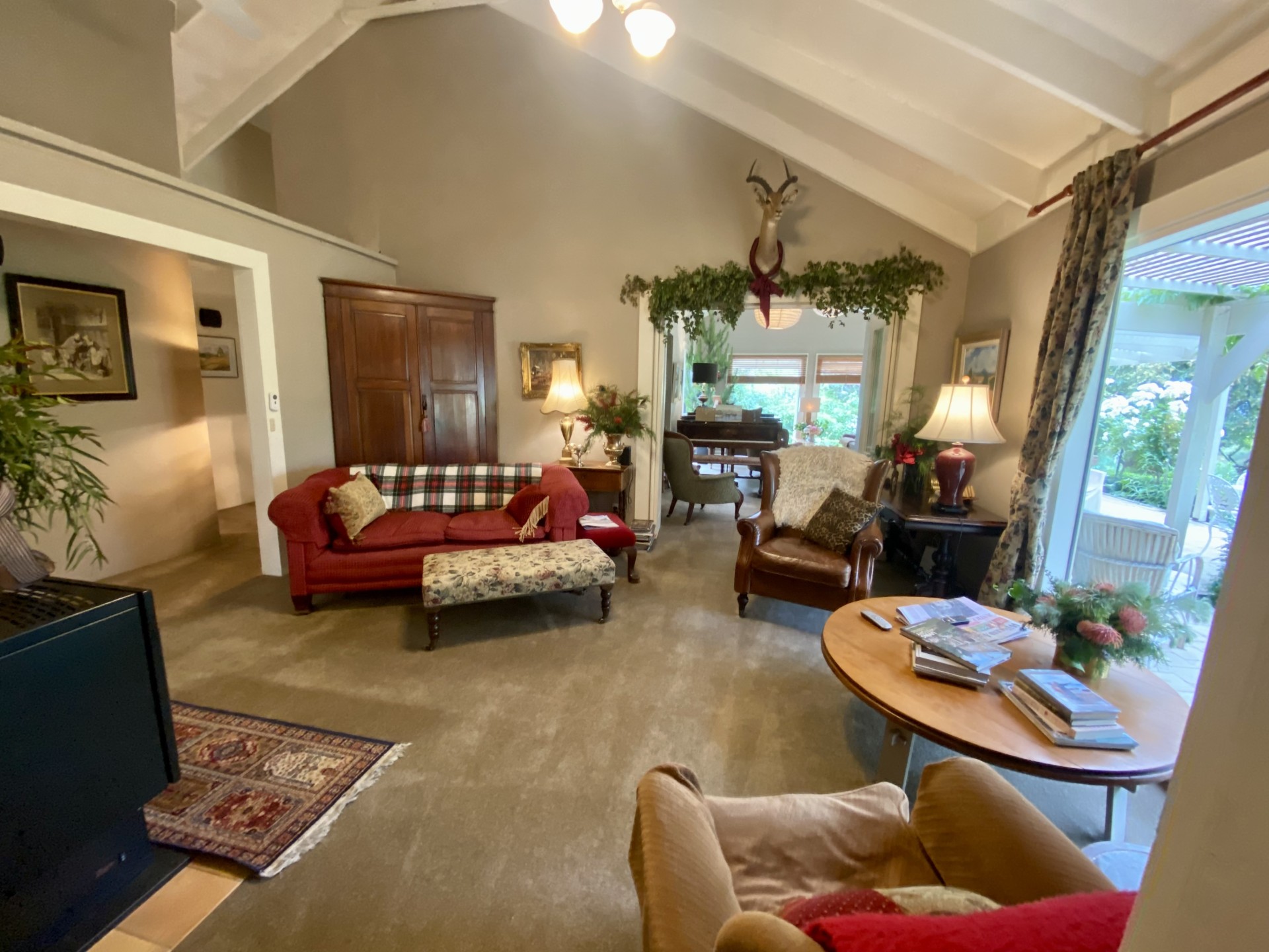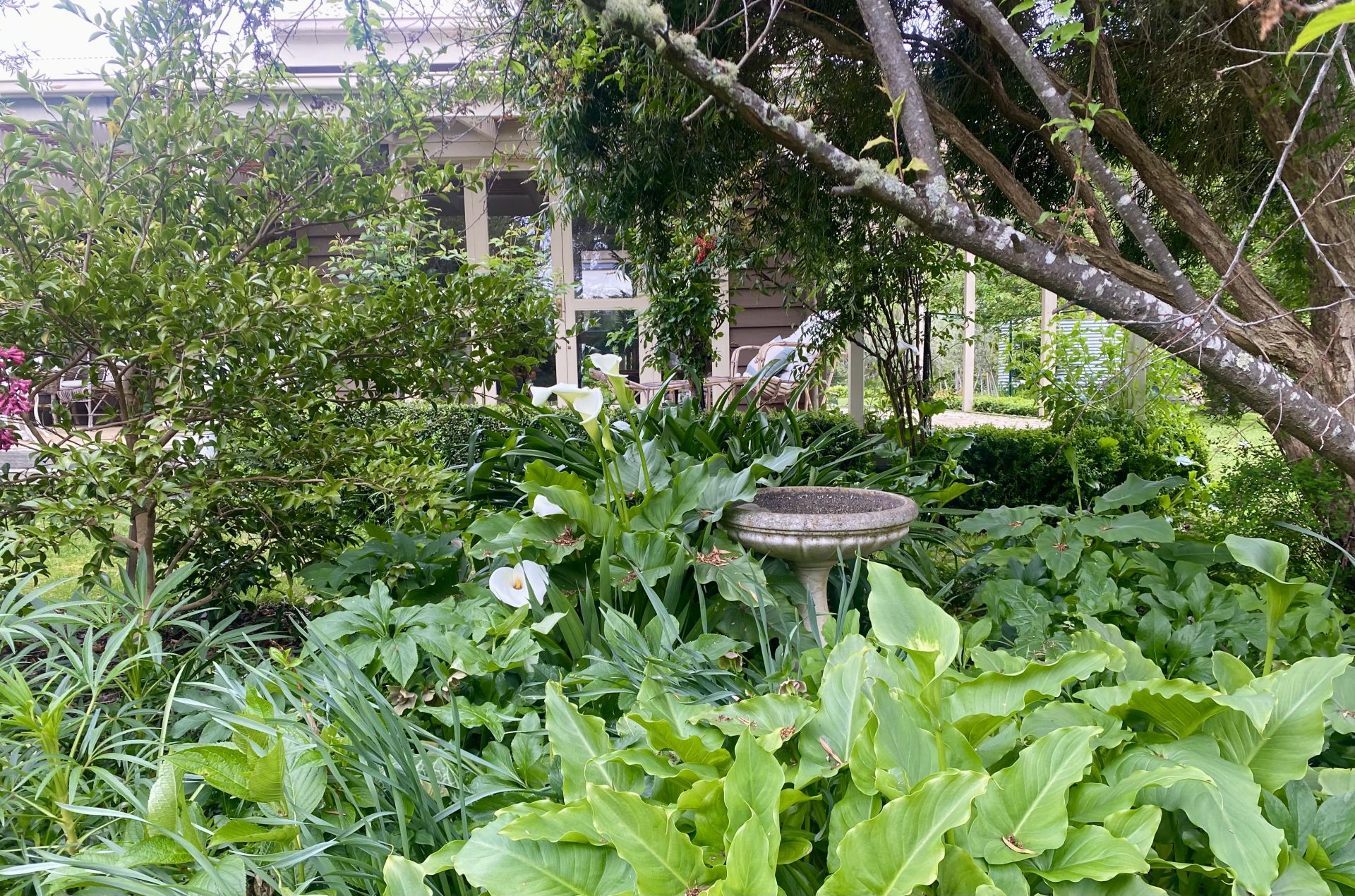Verandahs and paving wrap around the house for all-weather protection and there is always a sheltered nook to sit and enjoy the seasons. The garden has been developed and loved into being, a divine botanical oasis to enjoy and relax in.
