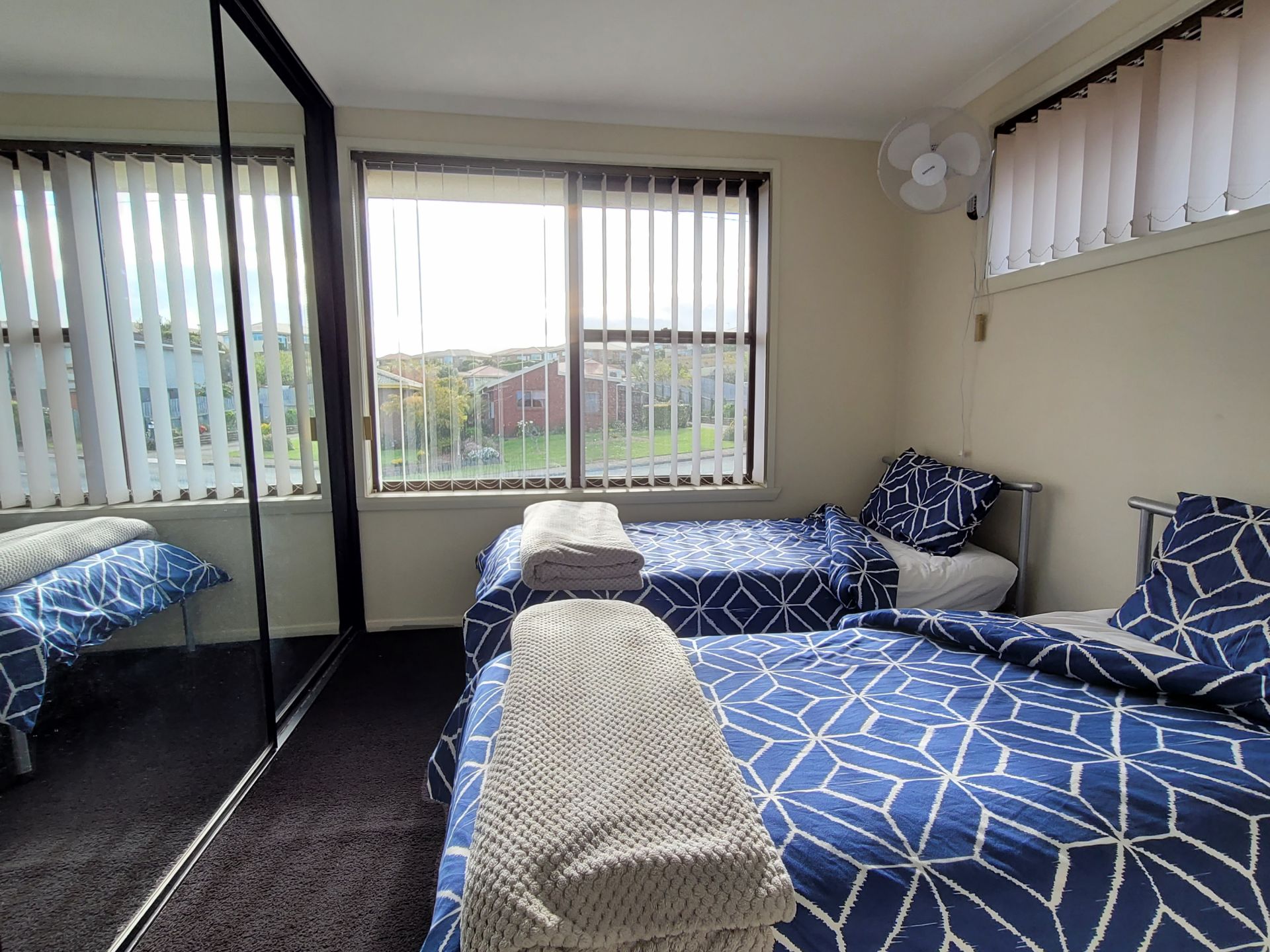 The other two bedrooms on the top floor are light-filled and have large built-in robes as well. Ideal as queen rooms, they can easily accommodate bunks.