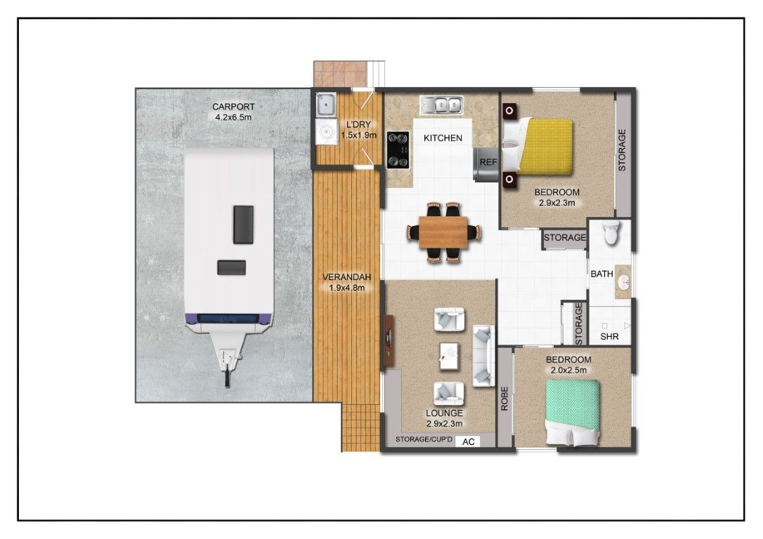 TOTAL Plenty of Storage, Private, Front Verandah, BBQ Area & Garden Beds A/C High Carport