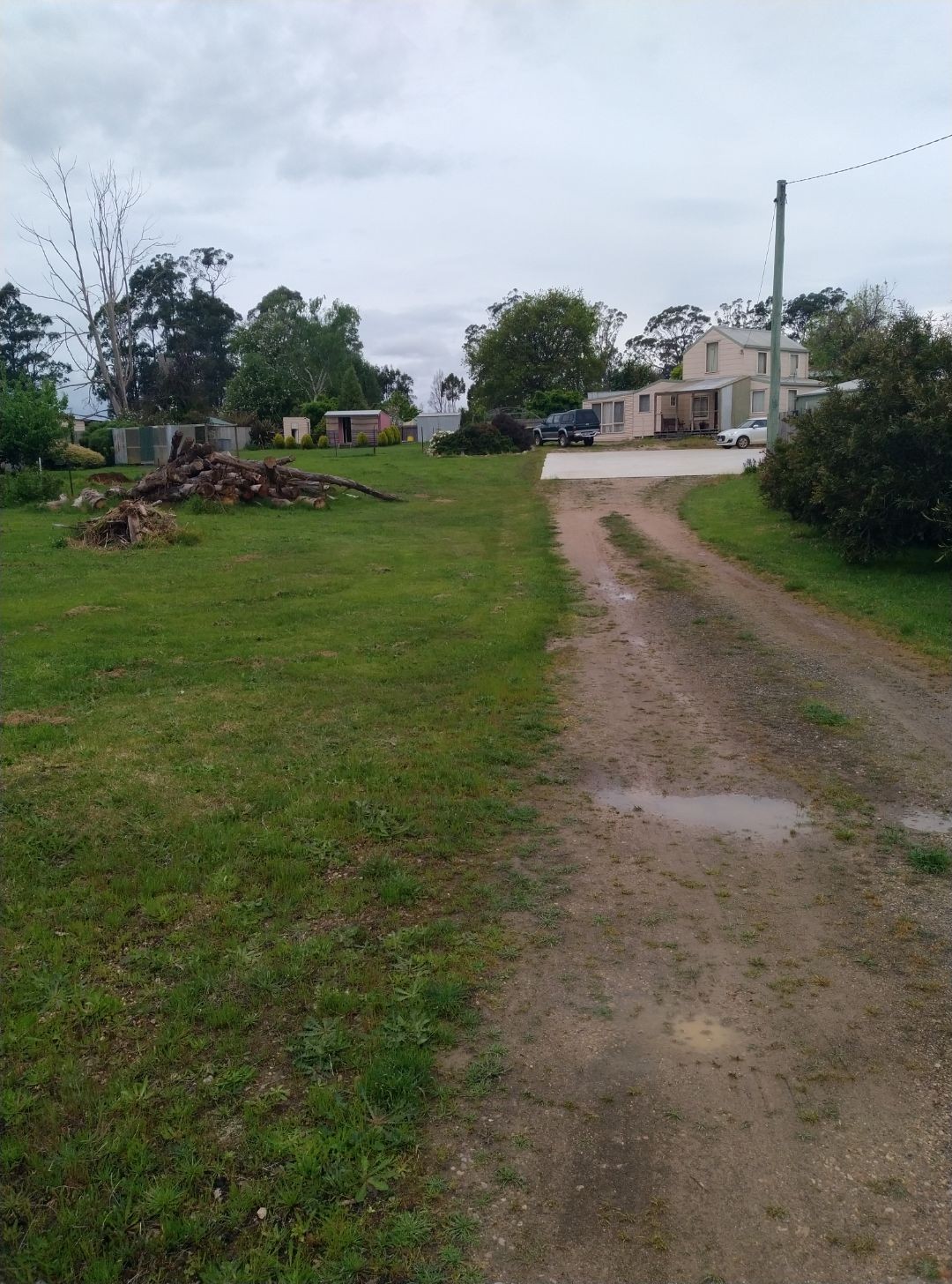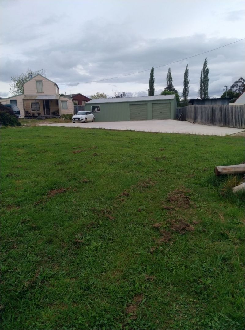 2 Bedroom cottage with 12 x 7 garage with power connected. Property is 3259m2 (3/4 acre) in the centre of Railton. Ideal for new home or several units or just live in the cottage. 2 3m x 3m garden sheds and dog yard. Cubby house with power. Storm water drains installed but not in a flood zone. main sewage runs down the fence line.