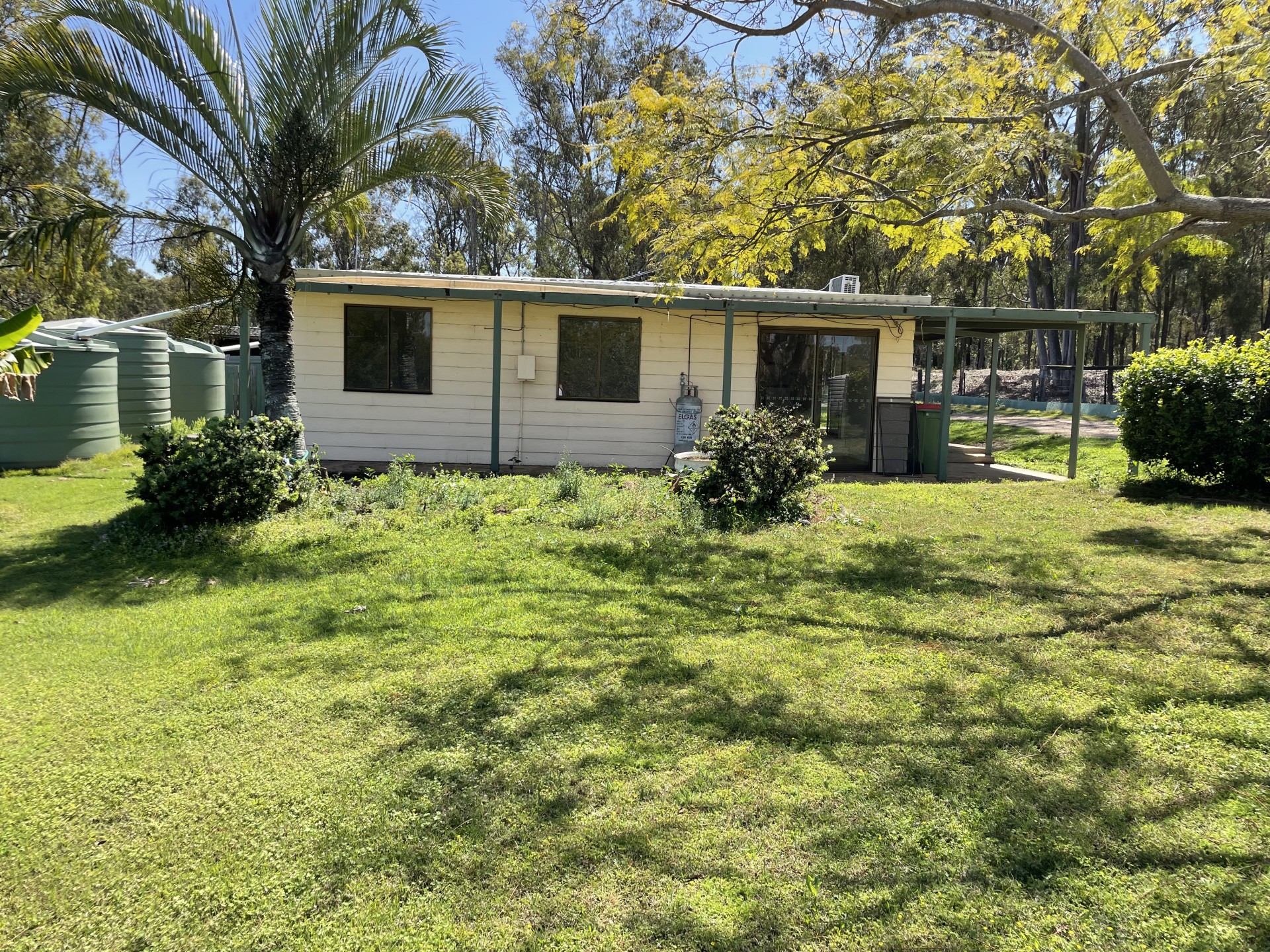 The home has split air conditioning in the main part of the house and air conditioning in the main bedroom. There are 3 water tanks connected to the home.