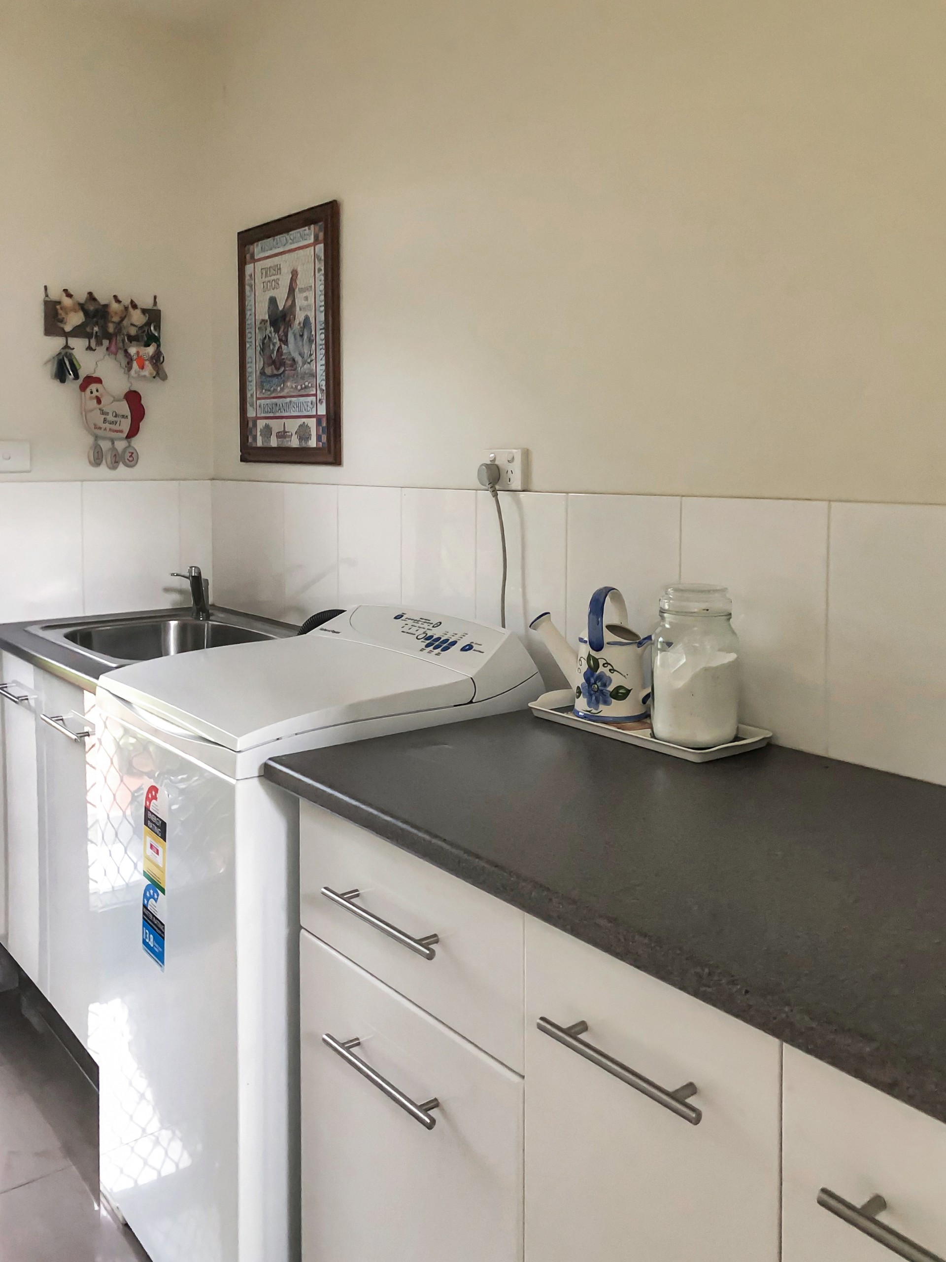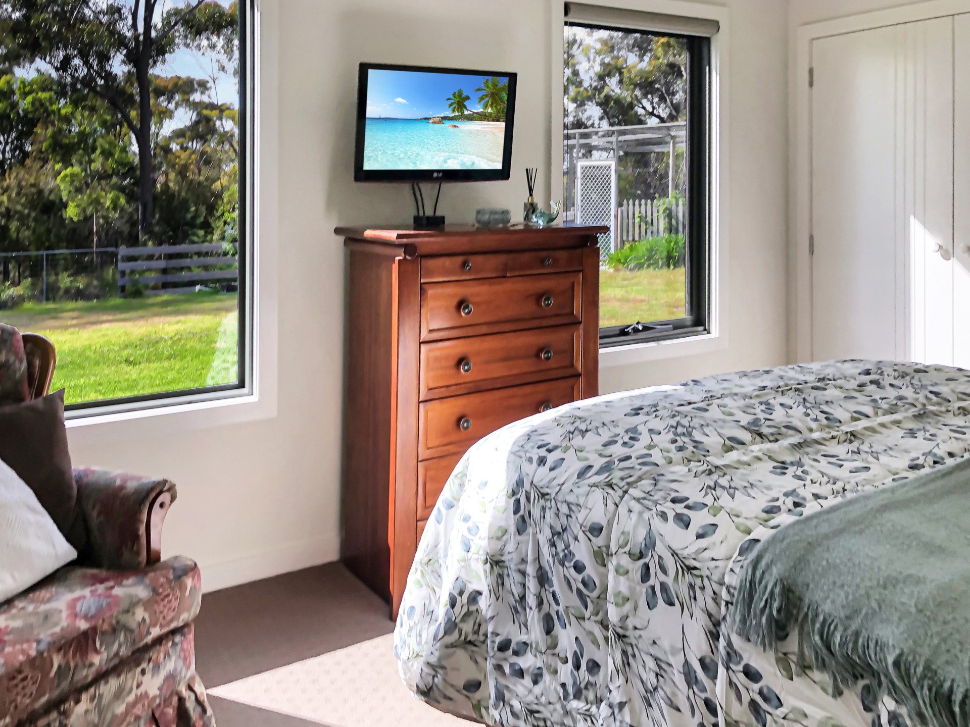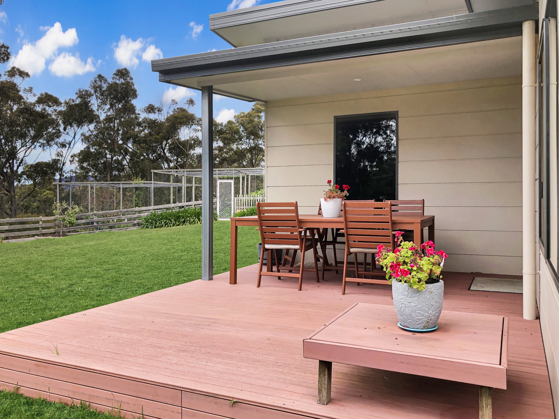 There is a dam and 100,000 litres of tank water so watering the numerous fruit trees and netted veggie garden isn't a problem.