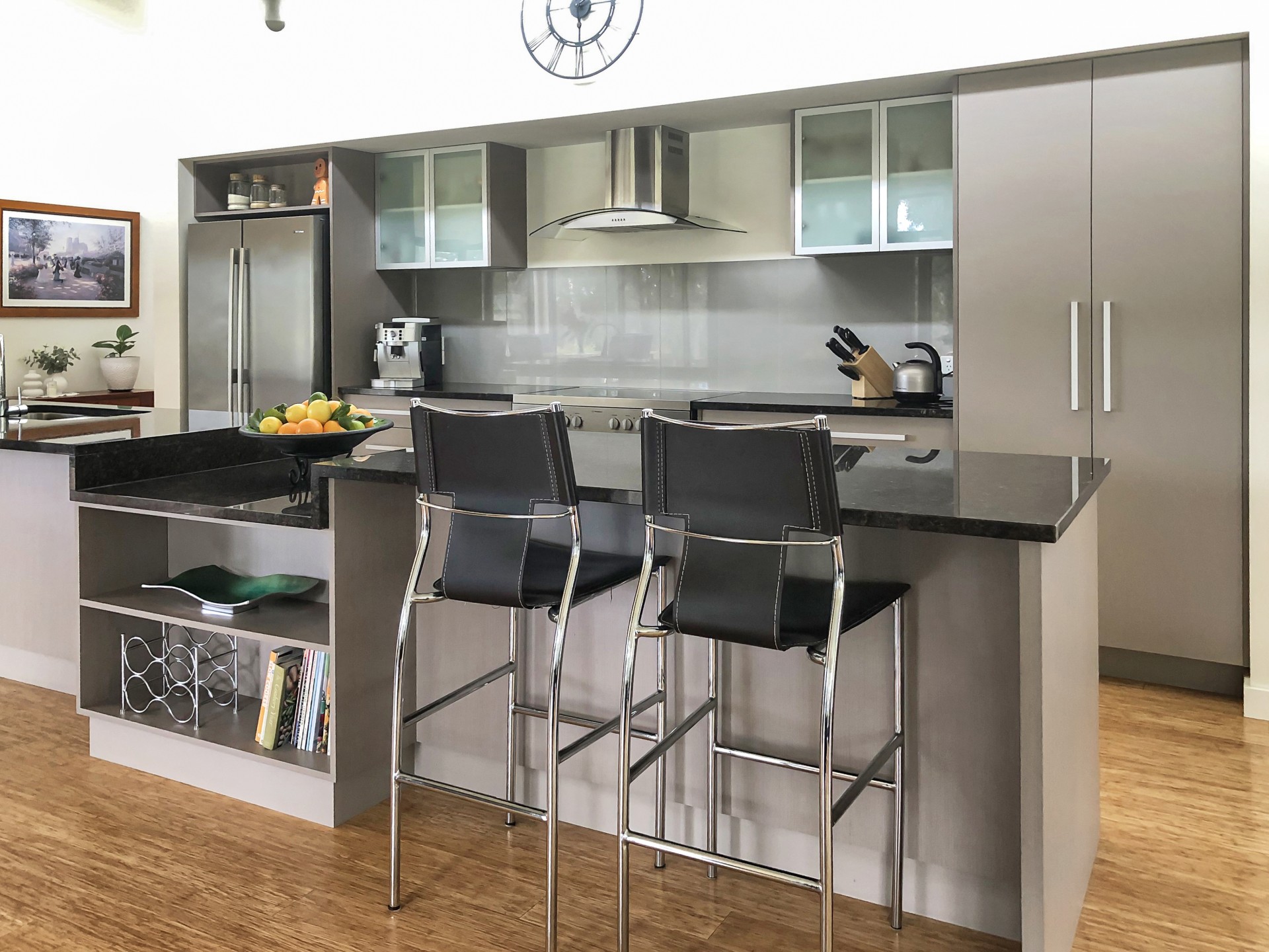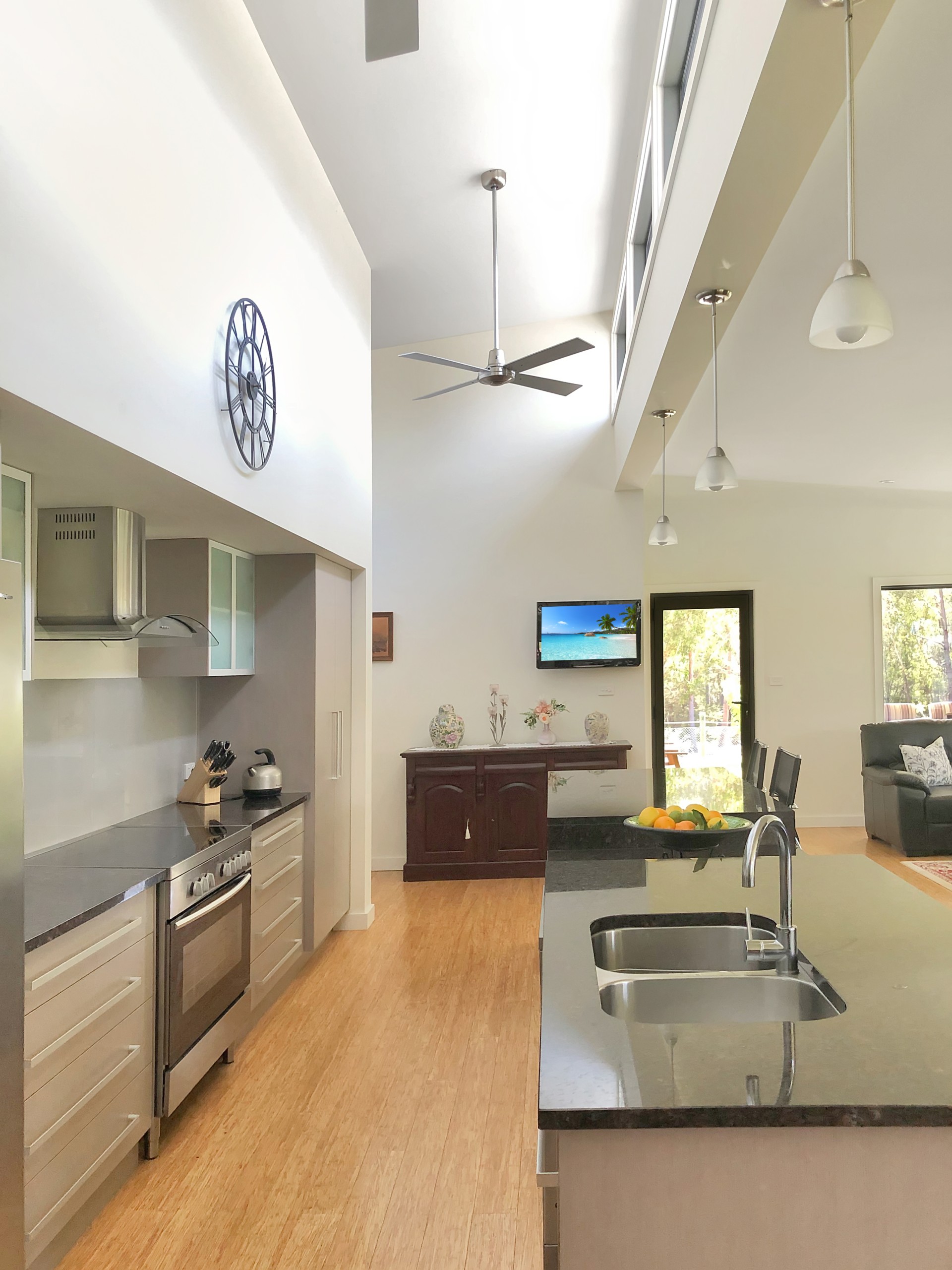 The galley kitchen has quality stainless steel appliances, lots of soft close drawers, pantry and granite bench tops.