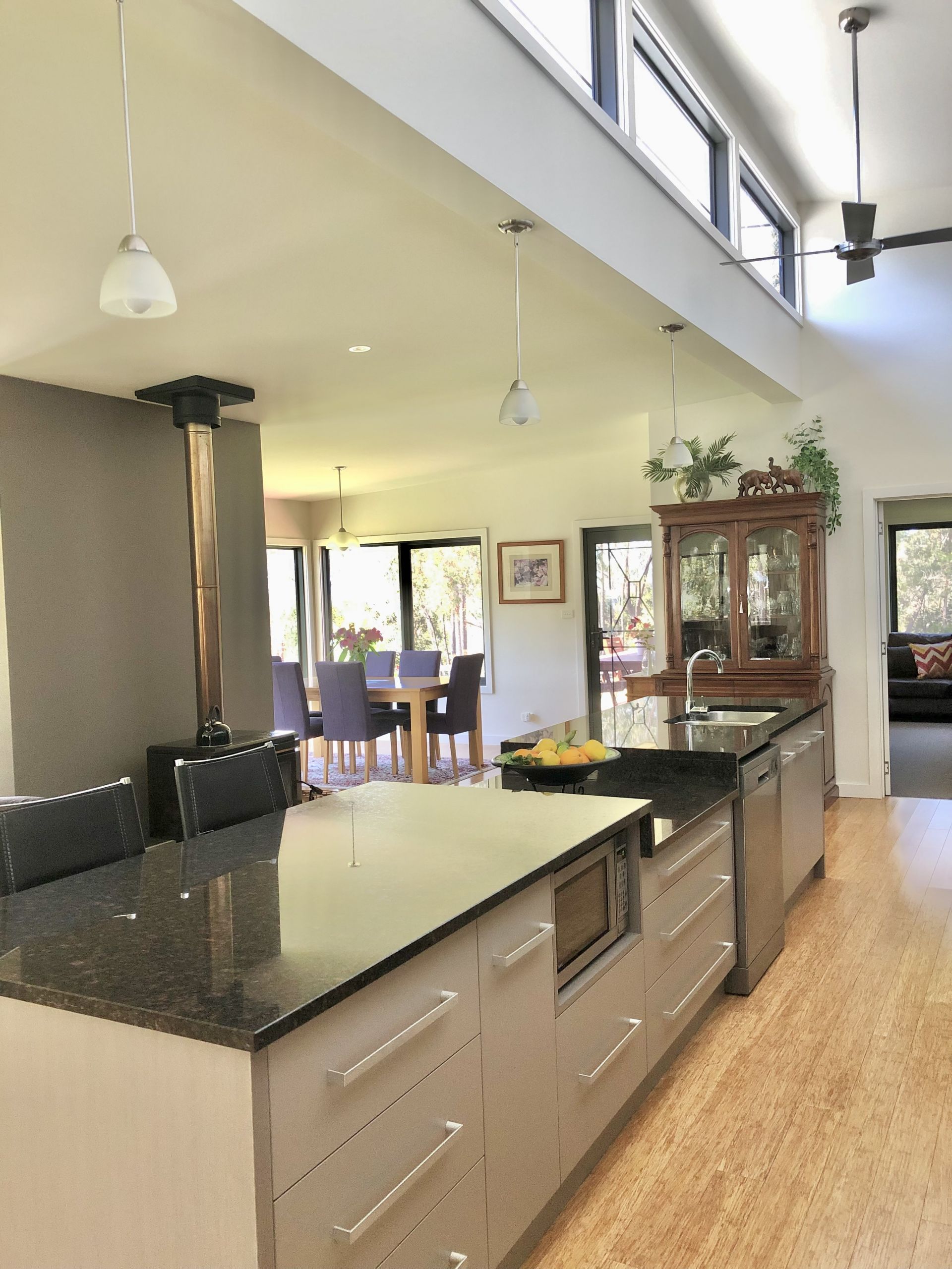 This home has been designed for entertainment with large open-plan living areas and timber flooring opening out onto decks on both the eastern and western sides to take in the morning and afternoon sun.