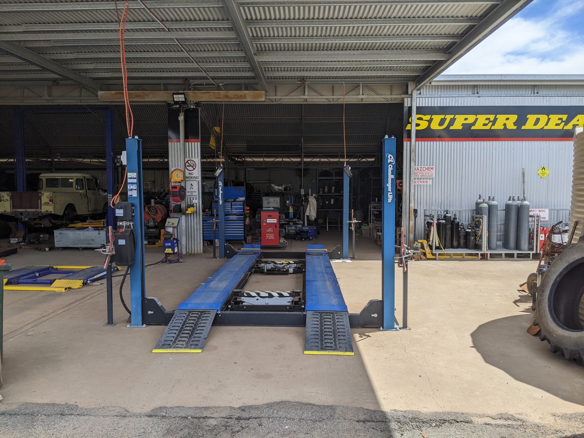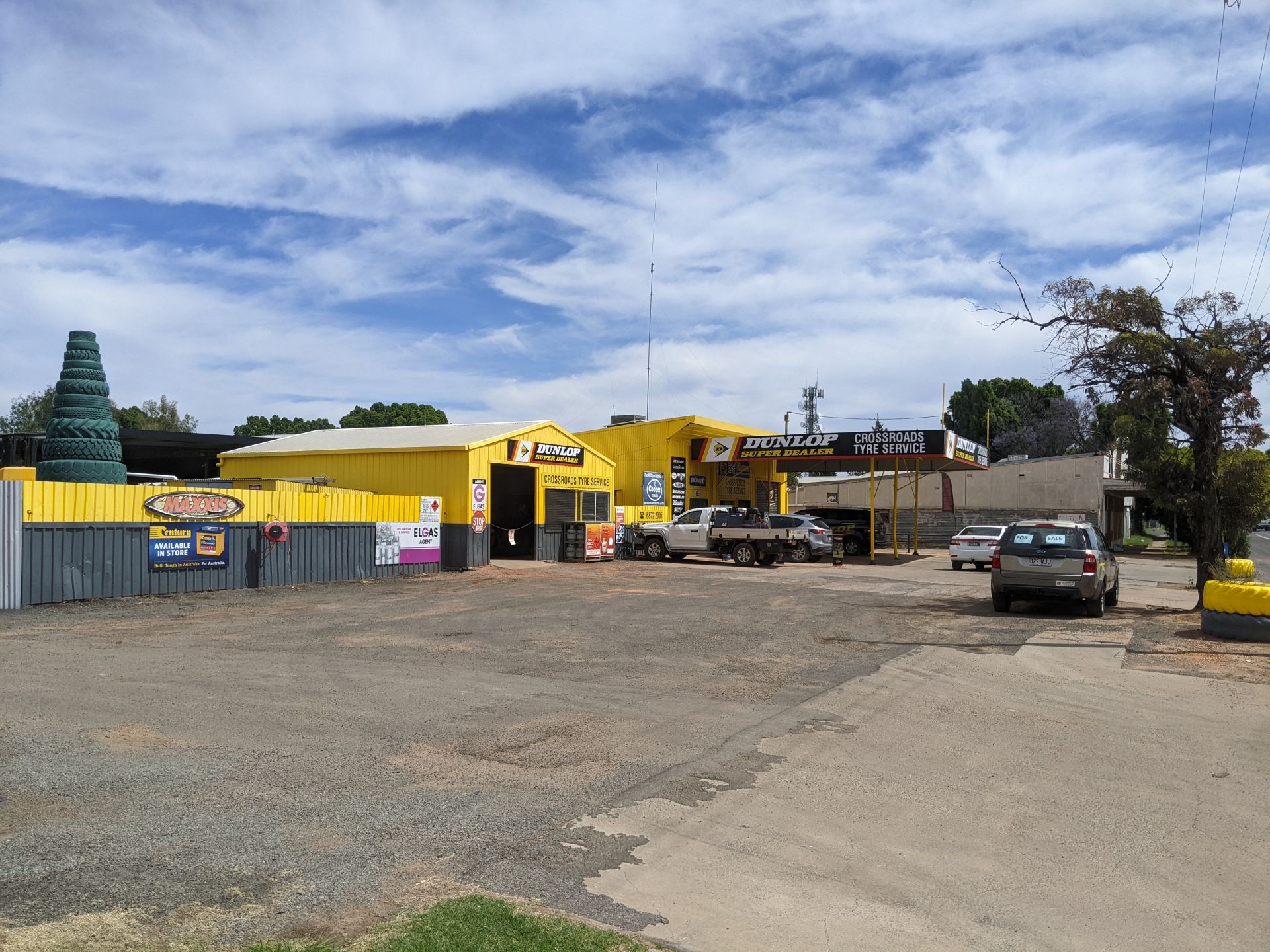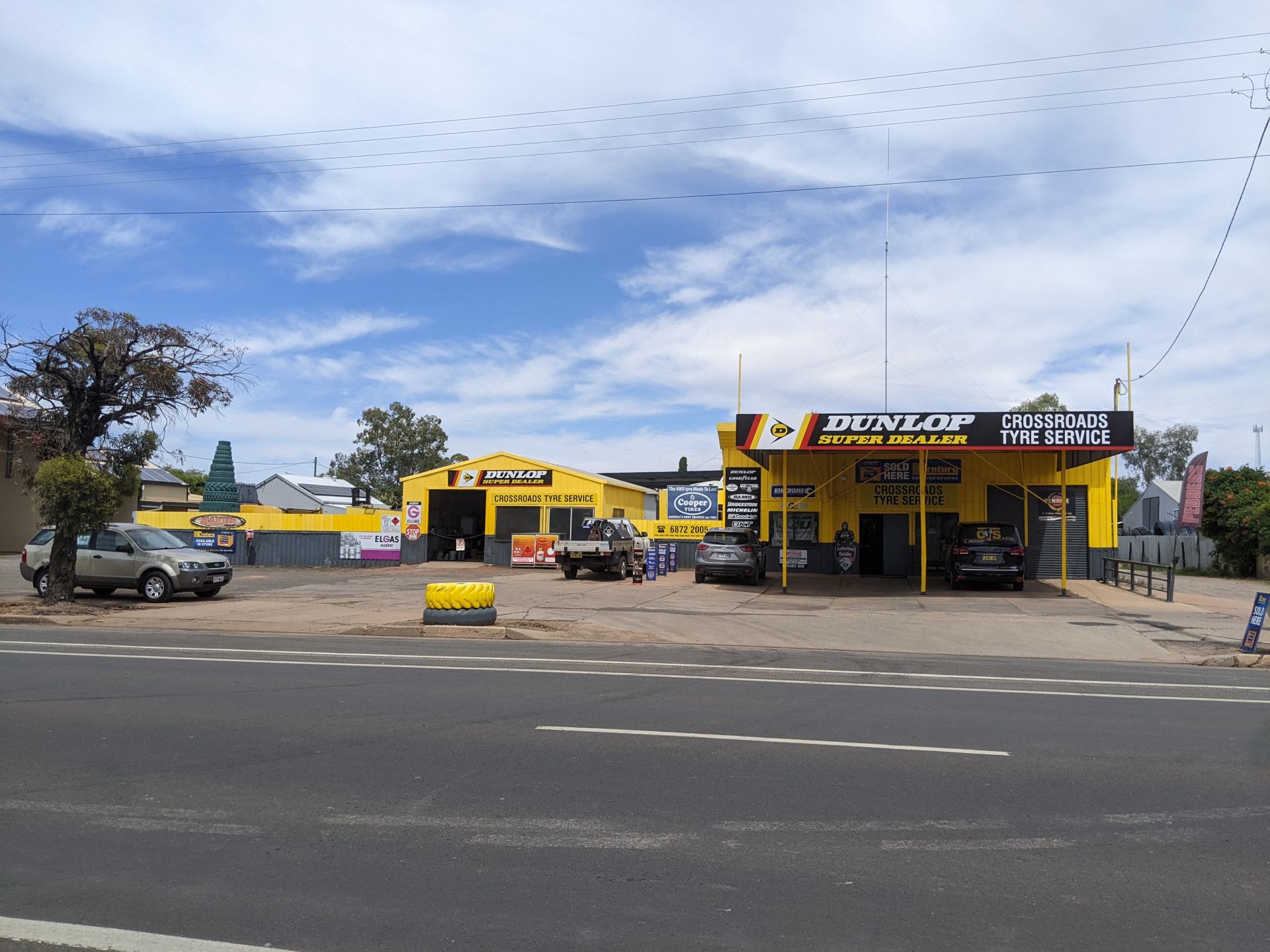 Crossroads Tyre Service is a tyre and mechanical service doing suspension and driveline repairs along with wheel alignments, Call outs to include on-farm service as well as highway attendance for the major tyre suppliers eg Bridgestone, and Goodyear. There is also a carwash attached to the business and a tool shop in the front office. It is the local BOC and Elgas agent. Major Suspension suppliers of Pedders, Tuff Dog and Dobinsons. Donaldson filter agent. Hydraulic hose and fitting repairs. We also offer general carting to some of the local farmers. The closest major tyre shop is 160 klms South or 200 klms east. Our main Clientele is the large cotton irrigators and the truck routes from Melbourne to Darwin and Cairns to Adelaide and Perth.