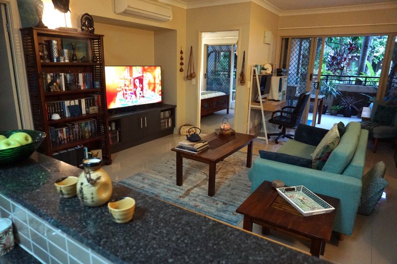 The apartment features 2 Daikin Reverse Cycle air-conditioners. 3 Ceiling fans and heavy blackout curtains.