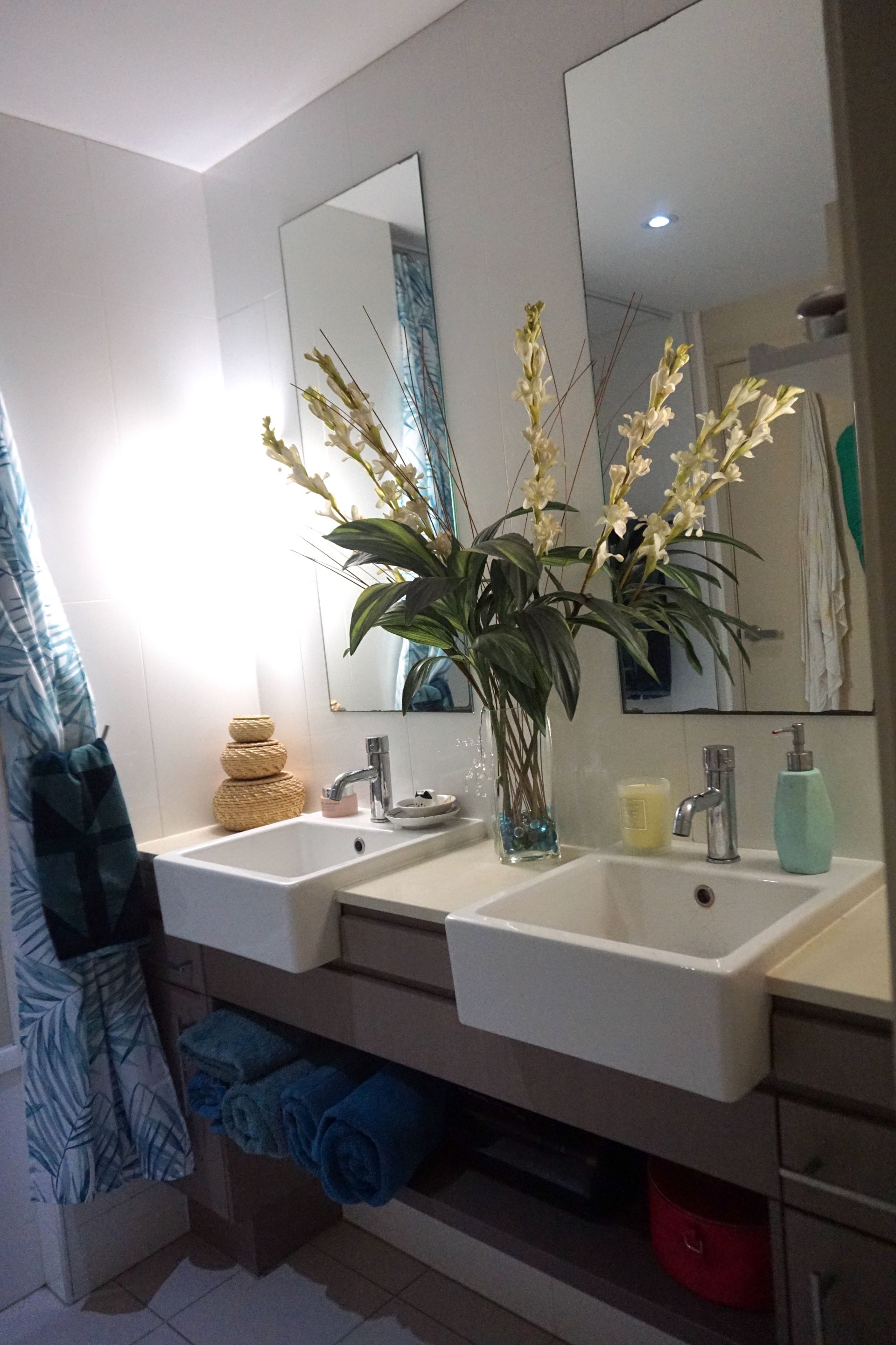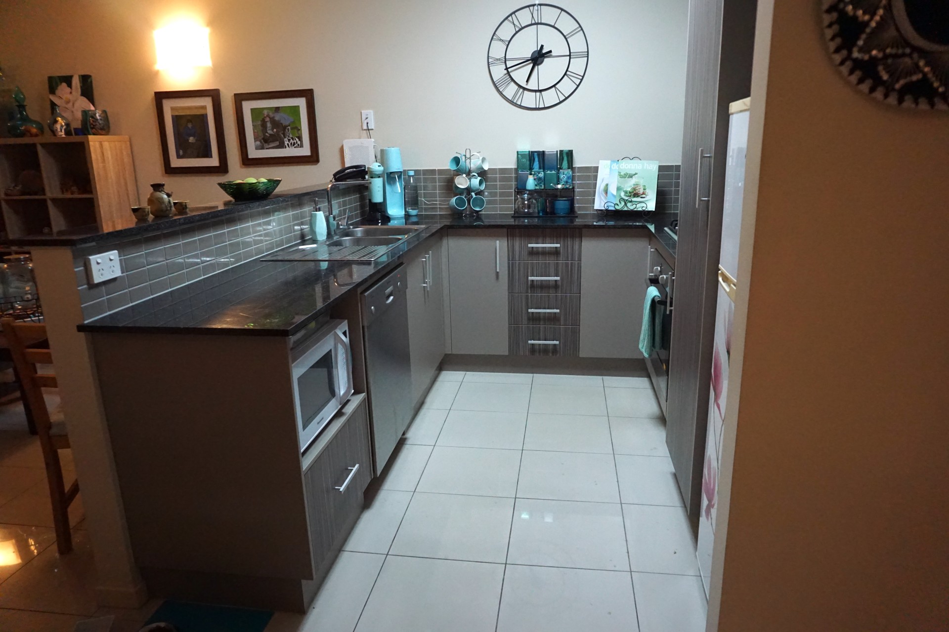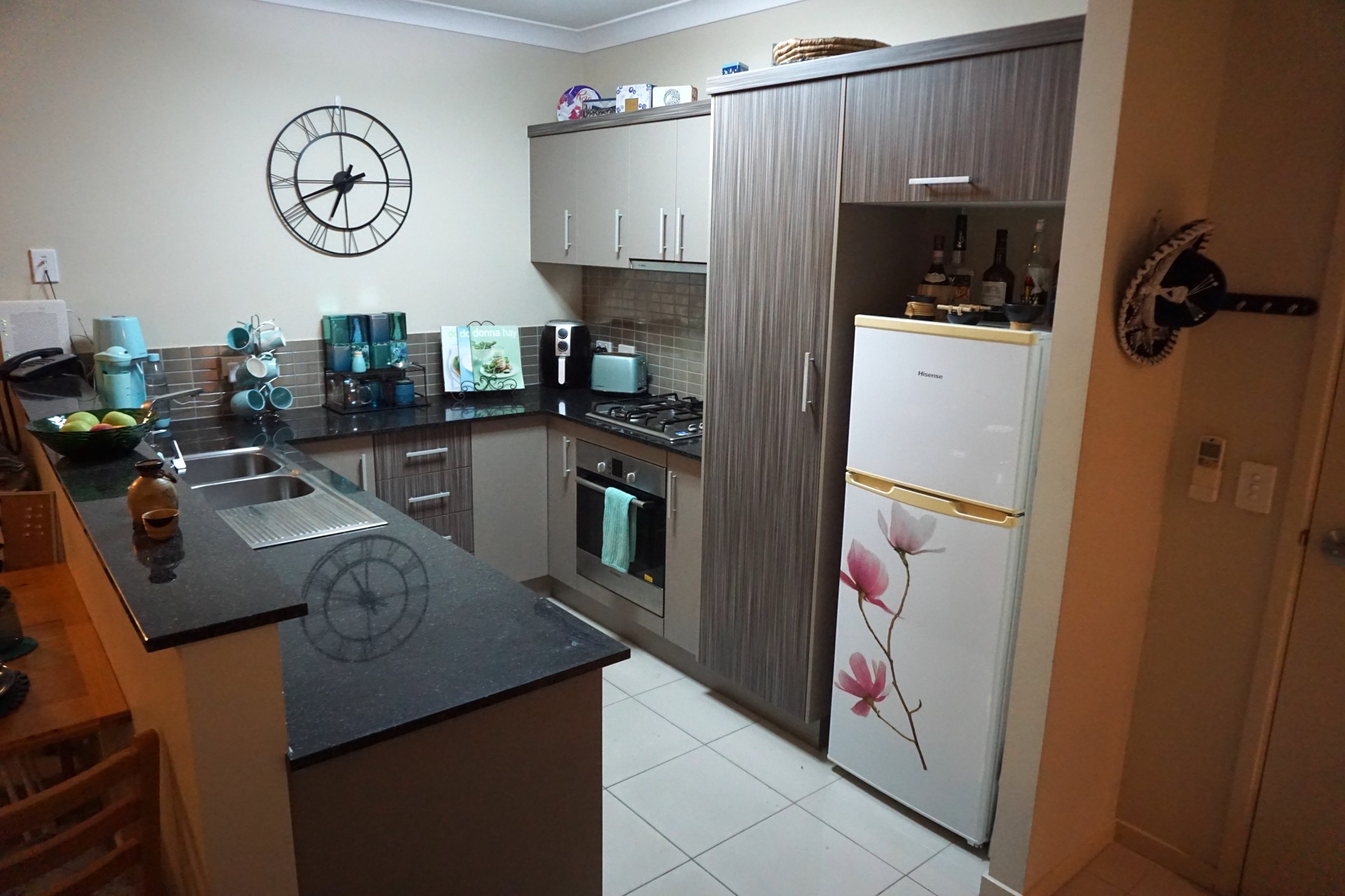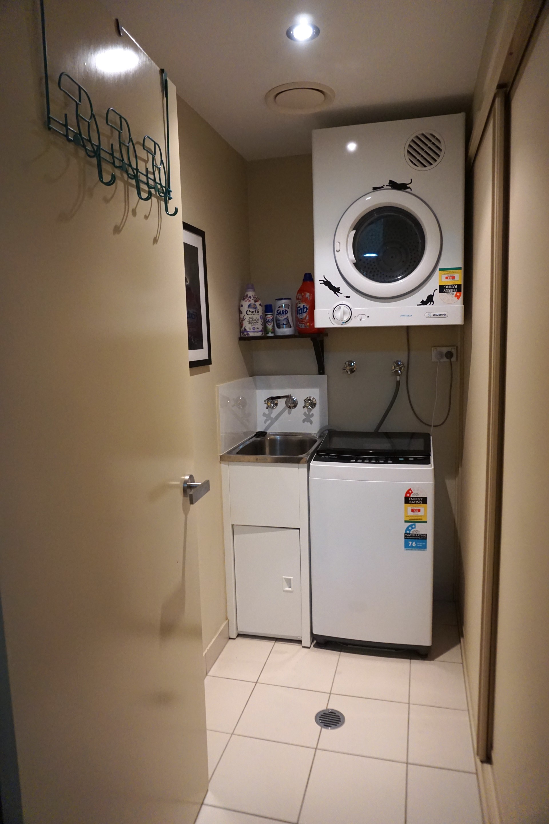 It has a great little laundry with loads of storage space and a full-sized hot water service. The dryer is included!