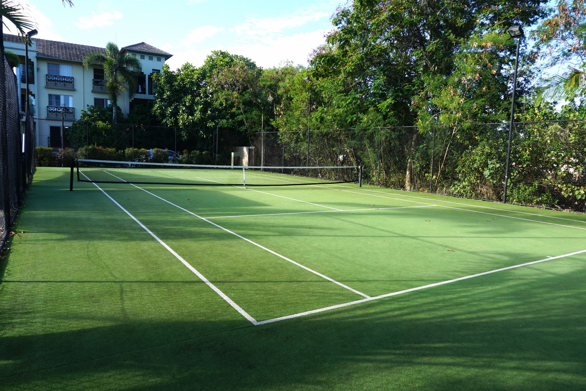 This gated complex features a fully equipped gym, a full-sized tennis court, 20+ BBQs with dining huts, a Spa, and a convenience store and coffee shop!