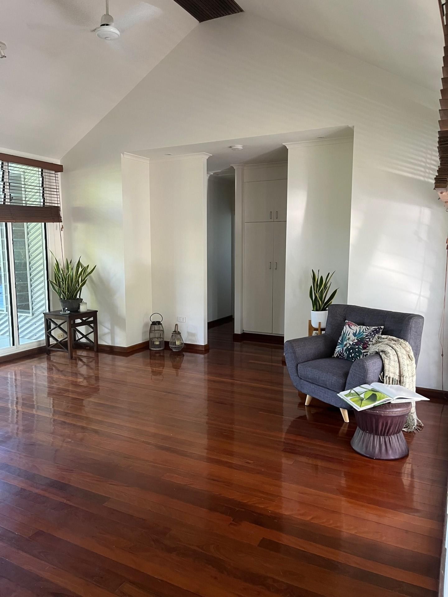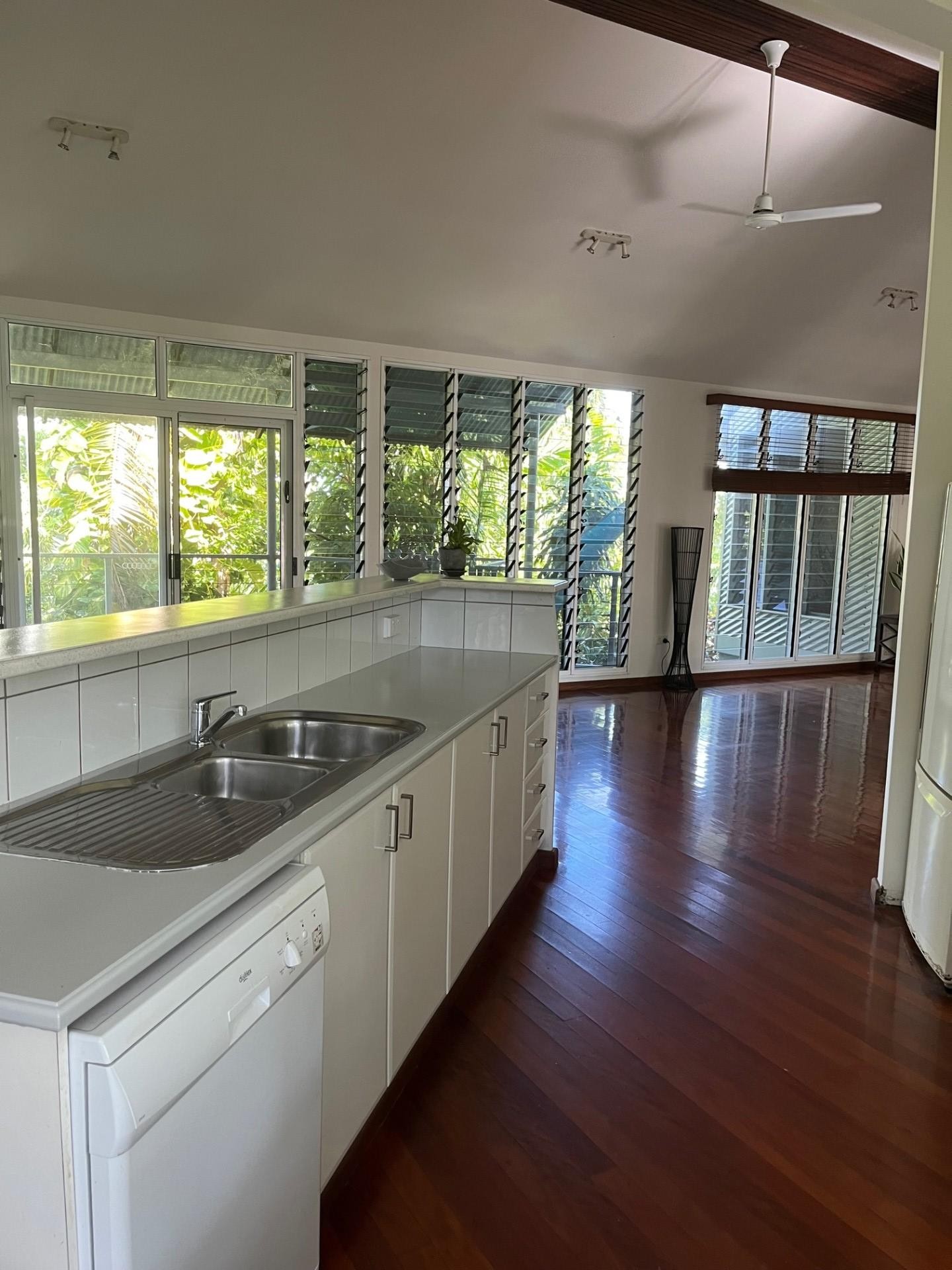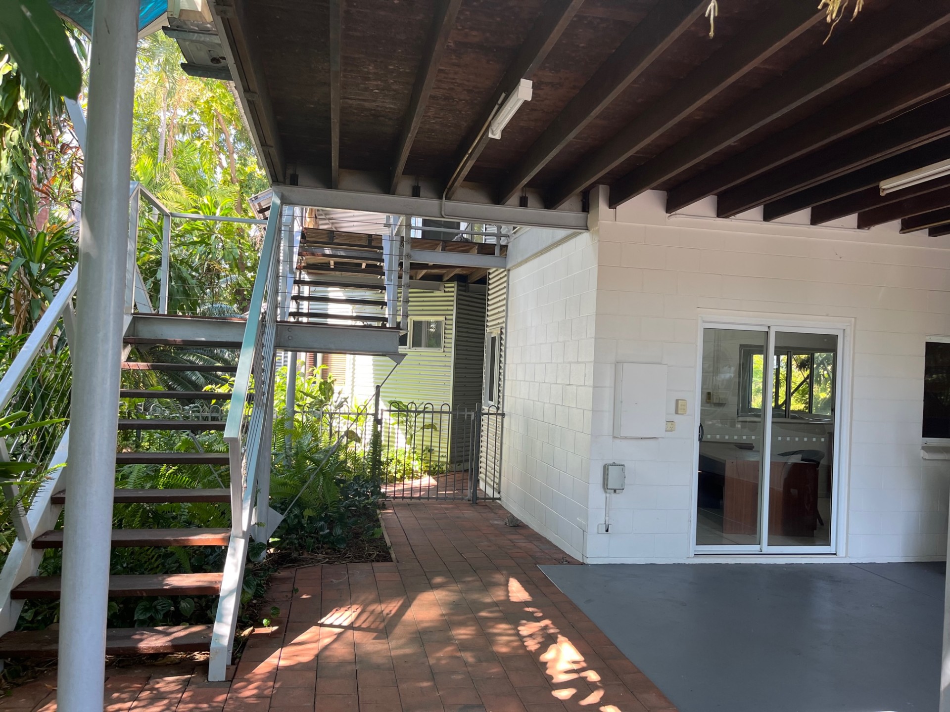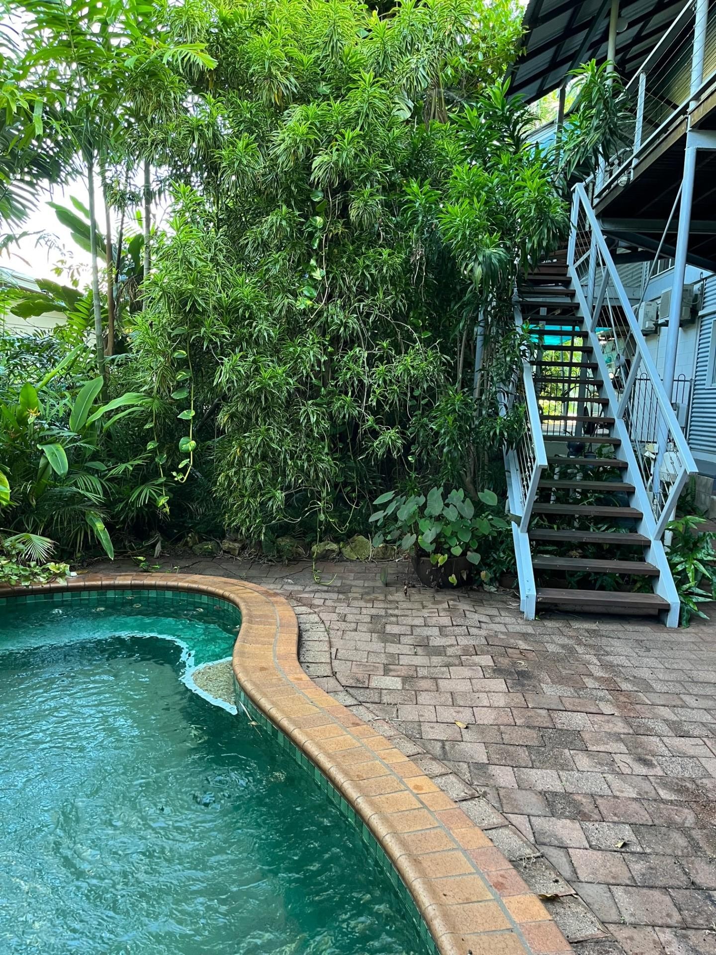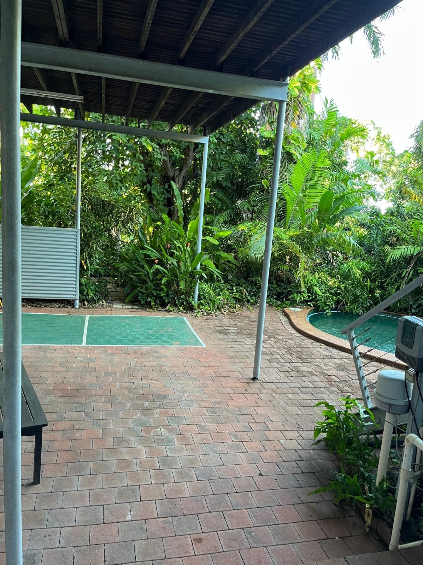 The spacious, open-plan living, dining, lounge and kitchen area with cathedral ceiling has ample storage and a walk-in, insulated pantry. This area leads onto a large rear verandah overlooking a salt-water pool and lush, low maintenance, fully reticulated tropical gardens and a stairway down to the pool. The pool is a lovely, private and cool "billabong" in which you can relax and watch the sun go down and starwatch at the end of a hard day... just bliss! Adjoining is a large, undercover, paved area that would easily seat up to 20 people and is great for hosting parties.
