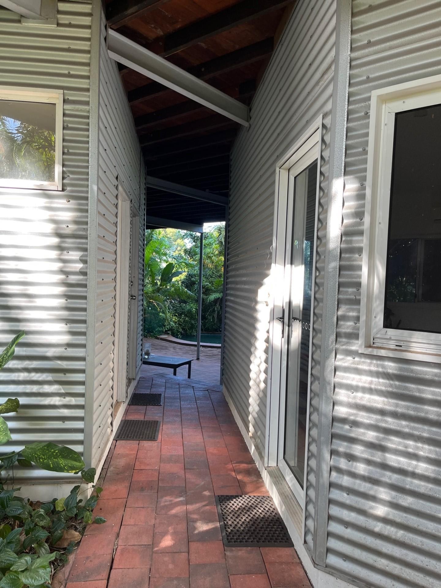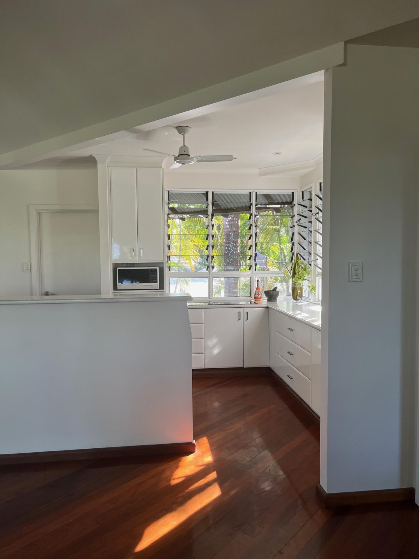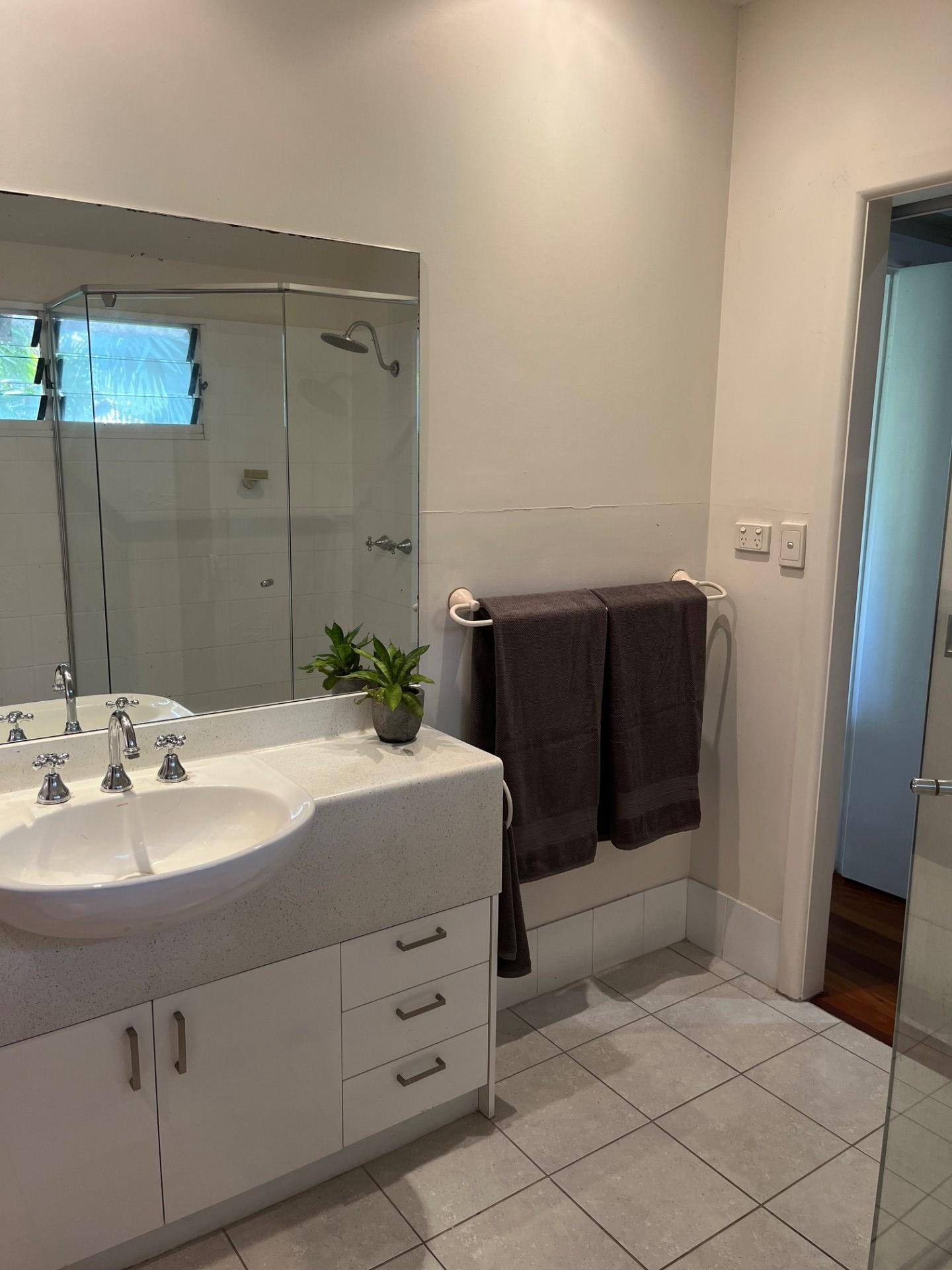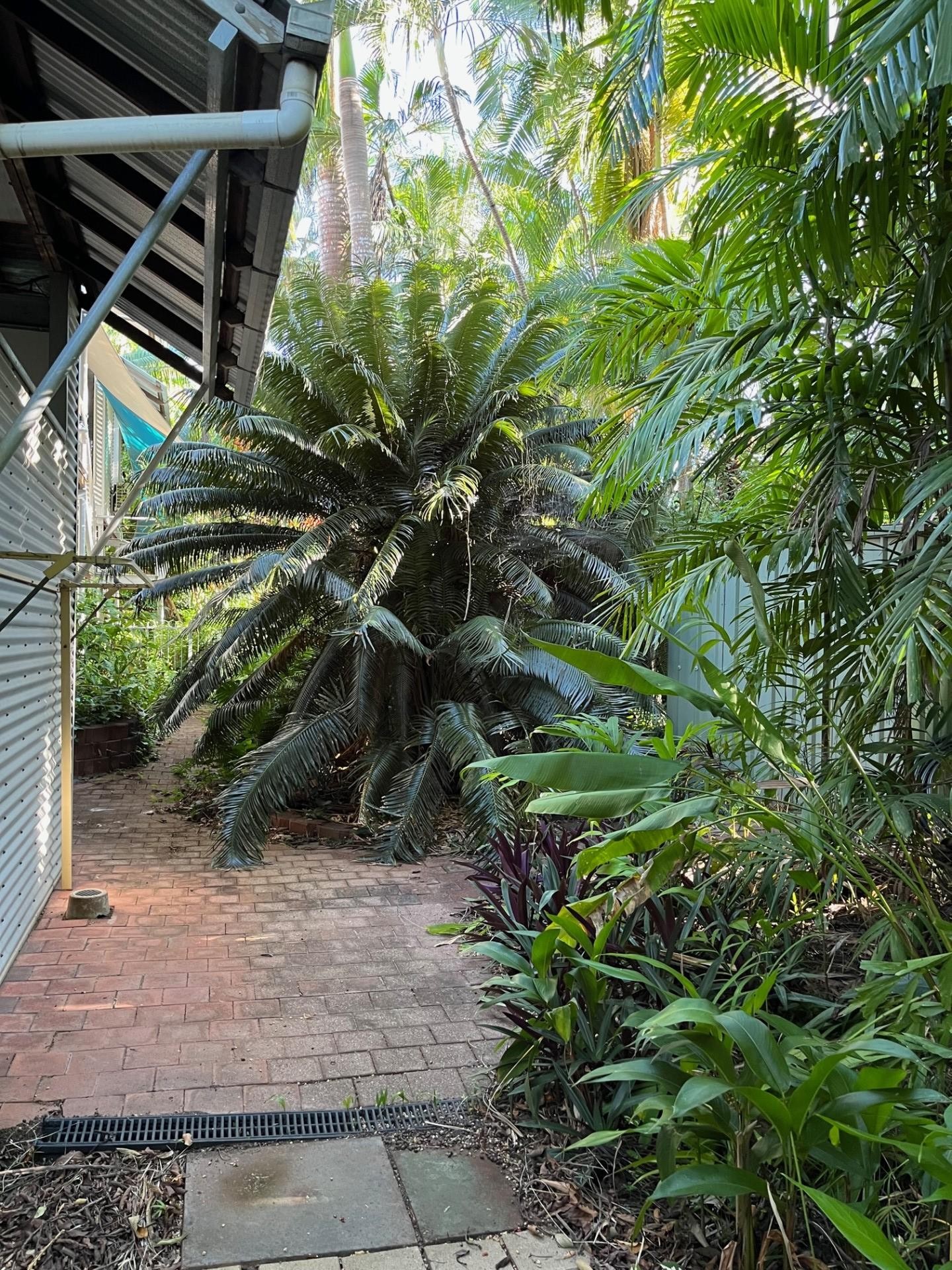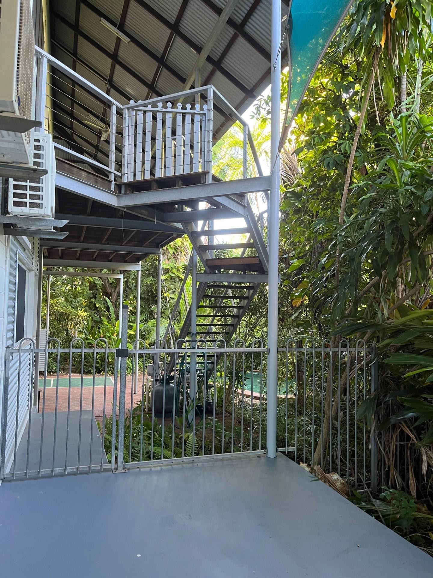 The spacious, open-plan living, dining, lounge and kitchen area with cathedral ceiling has ample storage and a walk-in, insulated pantry. This area leads onto a large rear verandah overlooking a salt-water pool and lush, low maintenance, fully reticulated tropical gardens and a stairway down to the pool. The pool is a lovely, private and cool "billabong" in which you can relax and watch the sun go down and starwatch at the end of a hard day... just bliss! Adjoining is a large, undercover, paved area that would easily seat up to 20 people and is great for hosting parties.