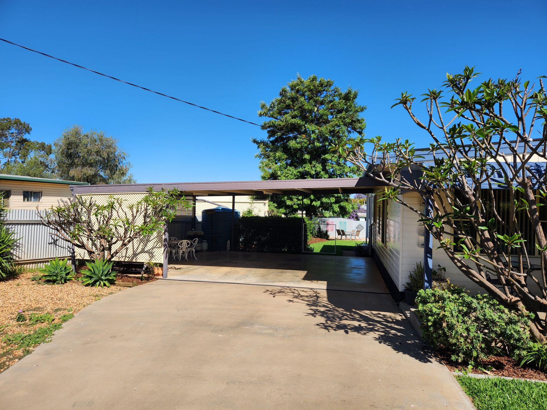 Enter the secure fully fenced yard into a powered double carport with extra room for that trailer or boat.