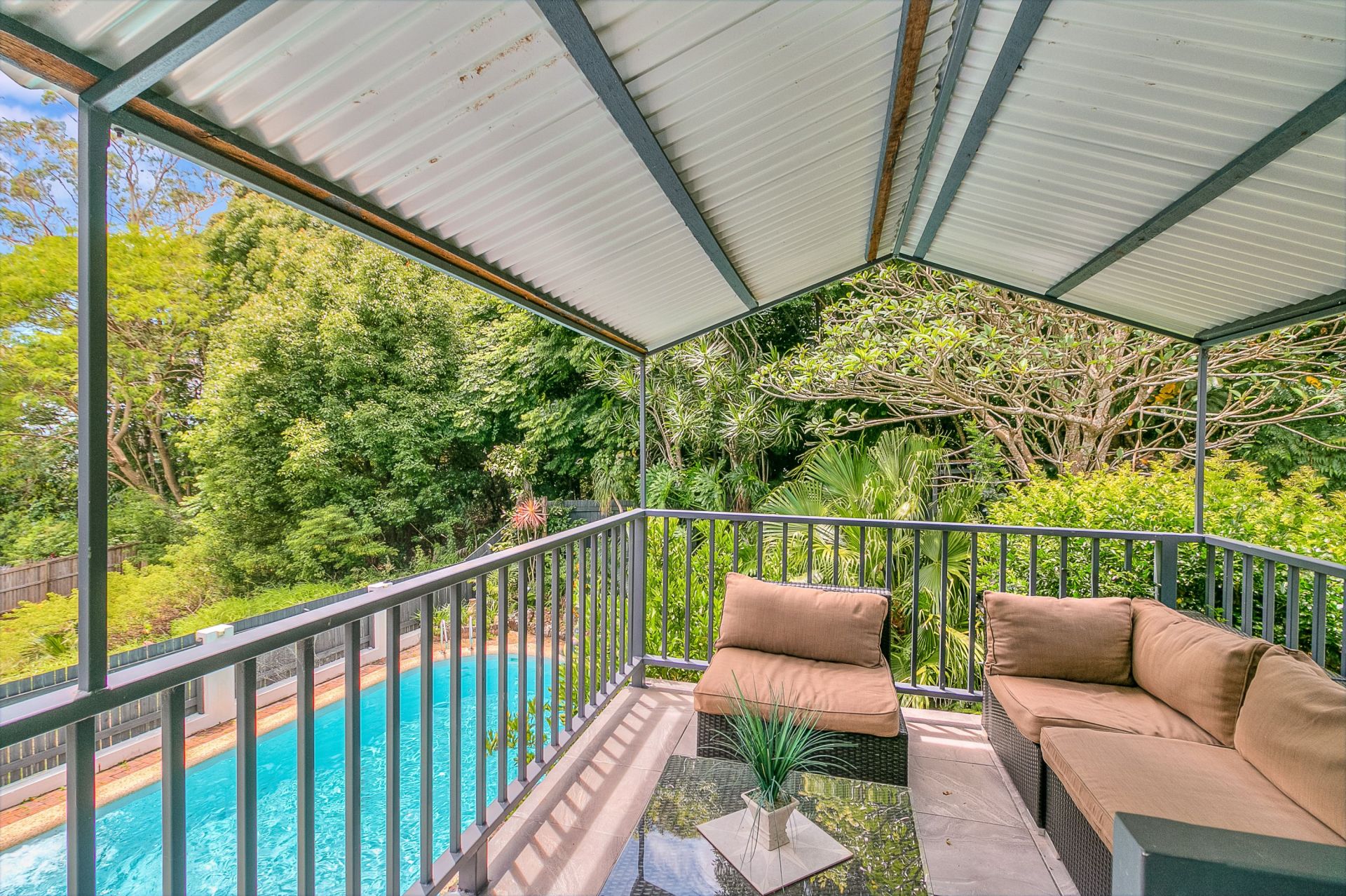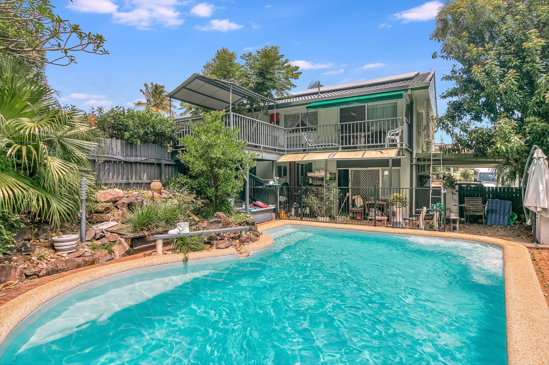 The property is ideal for the family with 5 bedrooms 3 bathrooms and a Saltwater fibreglass pool on a private 895m2 block
