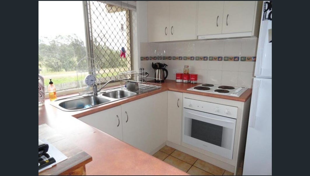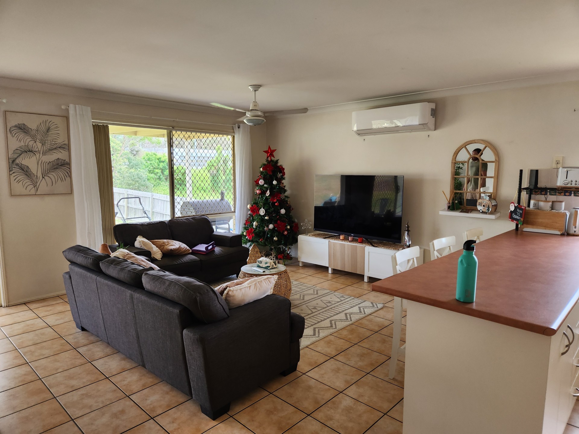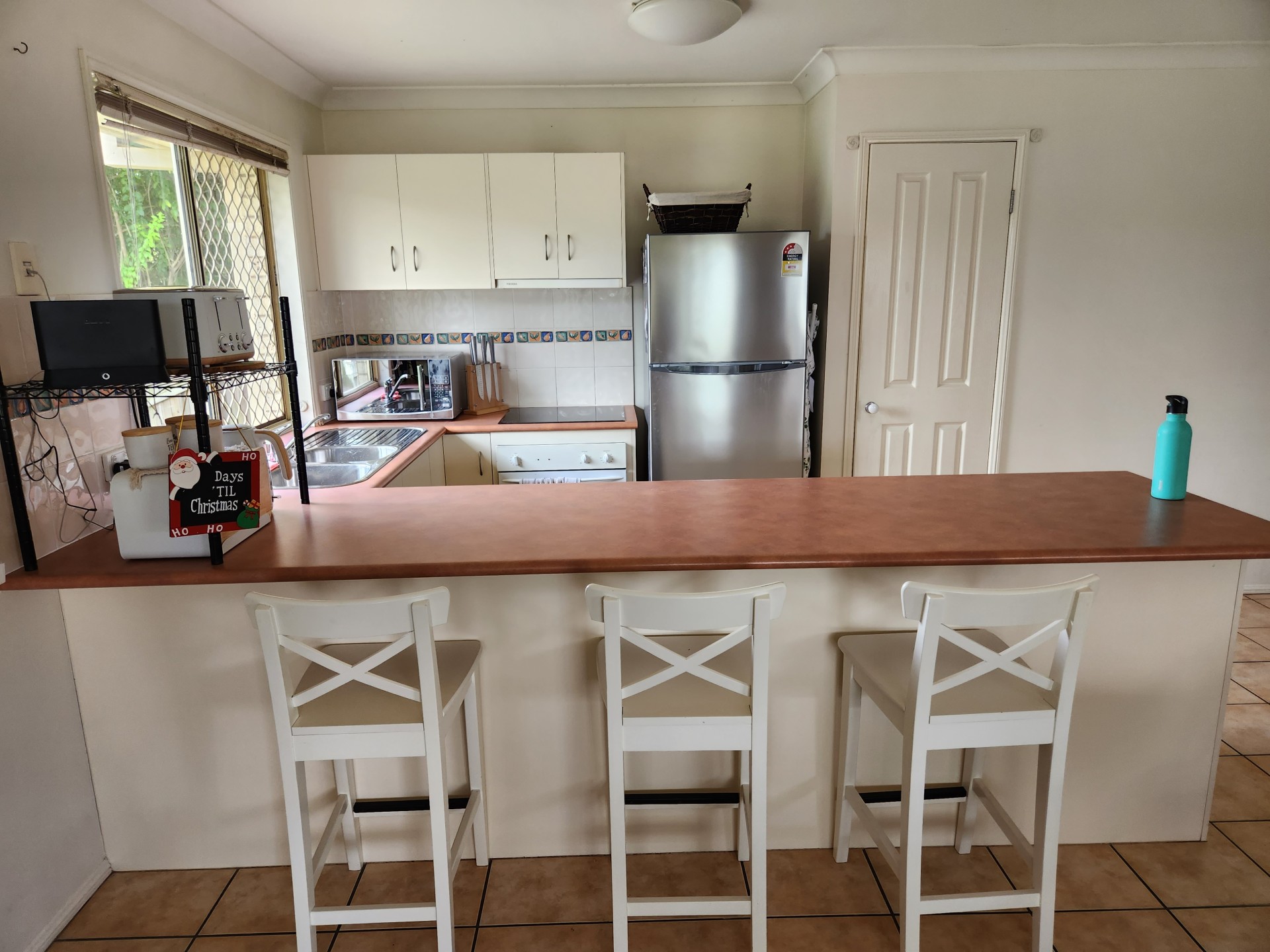- Spacious kitchen and large open plan tiled living area, with air conditioning.