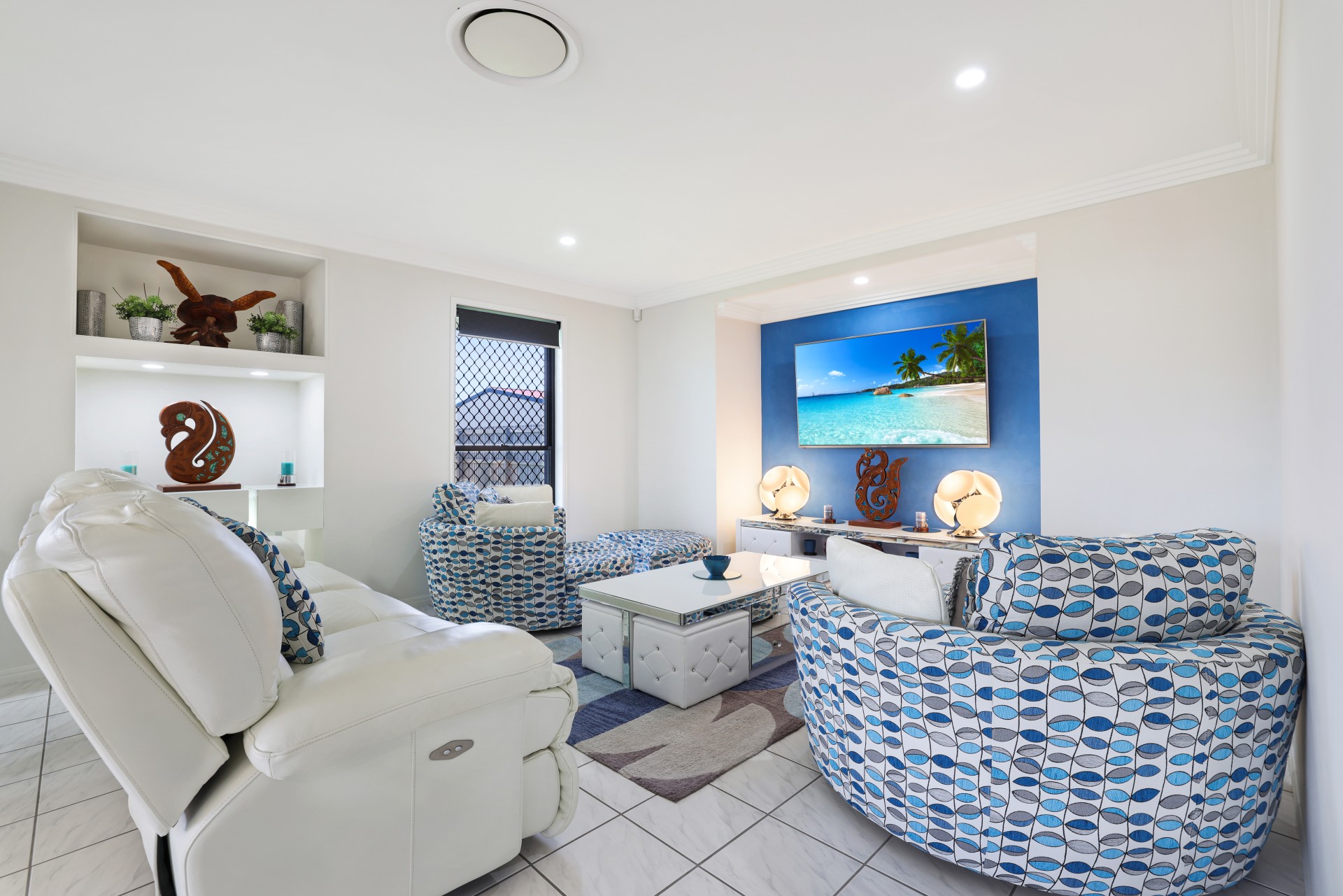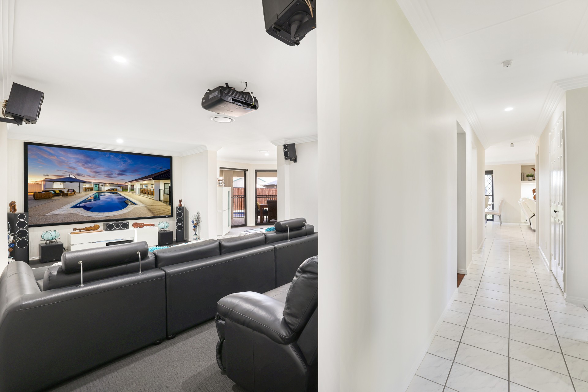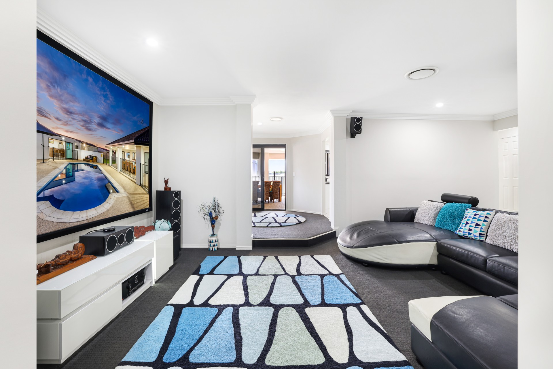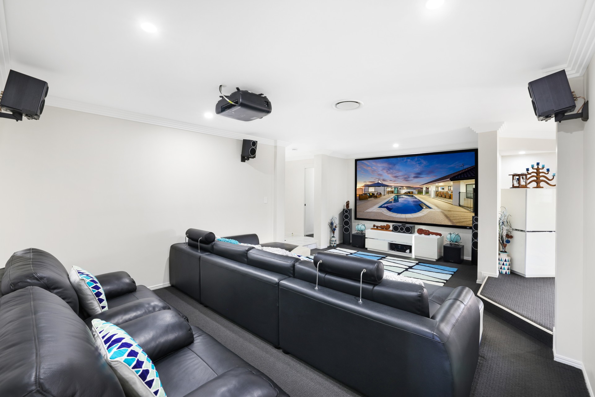 When you've had enough of the sun enter indoors for a cinematic experience on your gigantic 130-inch theatre screen, larger than your local sporting club. Chill out in the ducted air-conditioned coolness and prepare for extreme visuals & surround sound from this quality set-up.