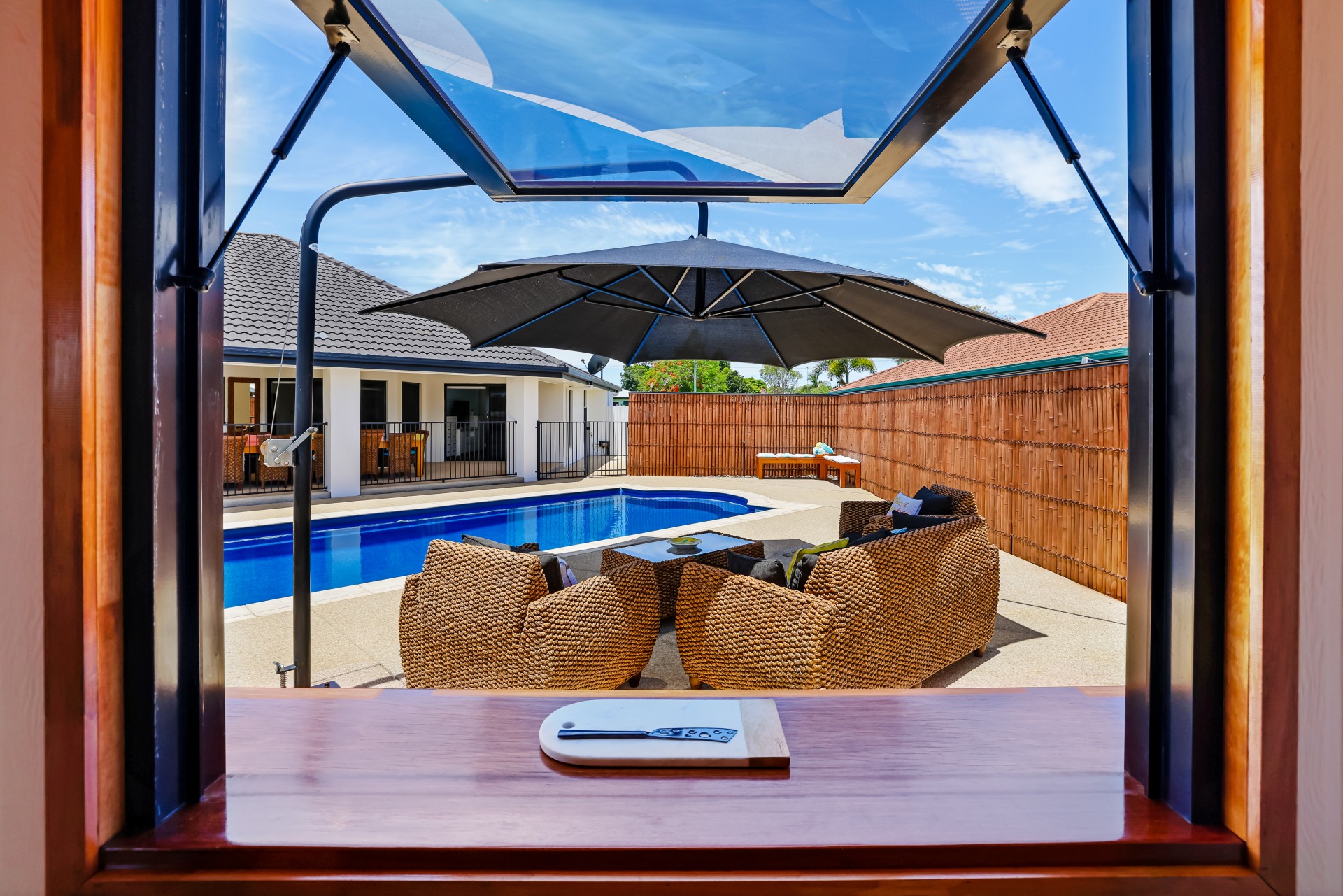There is a series of large glass sliding doors opening from the family/dining area, multipurpose room & master bedroom plus an outdoor servery bar from the kitchen. This design keeps you continuously connected to the view and socialising with your guests & family.