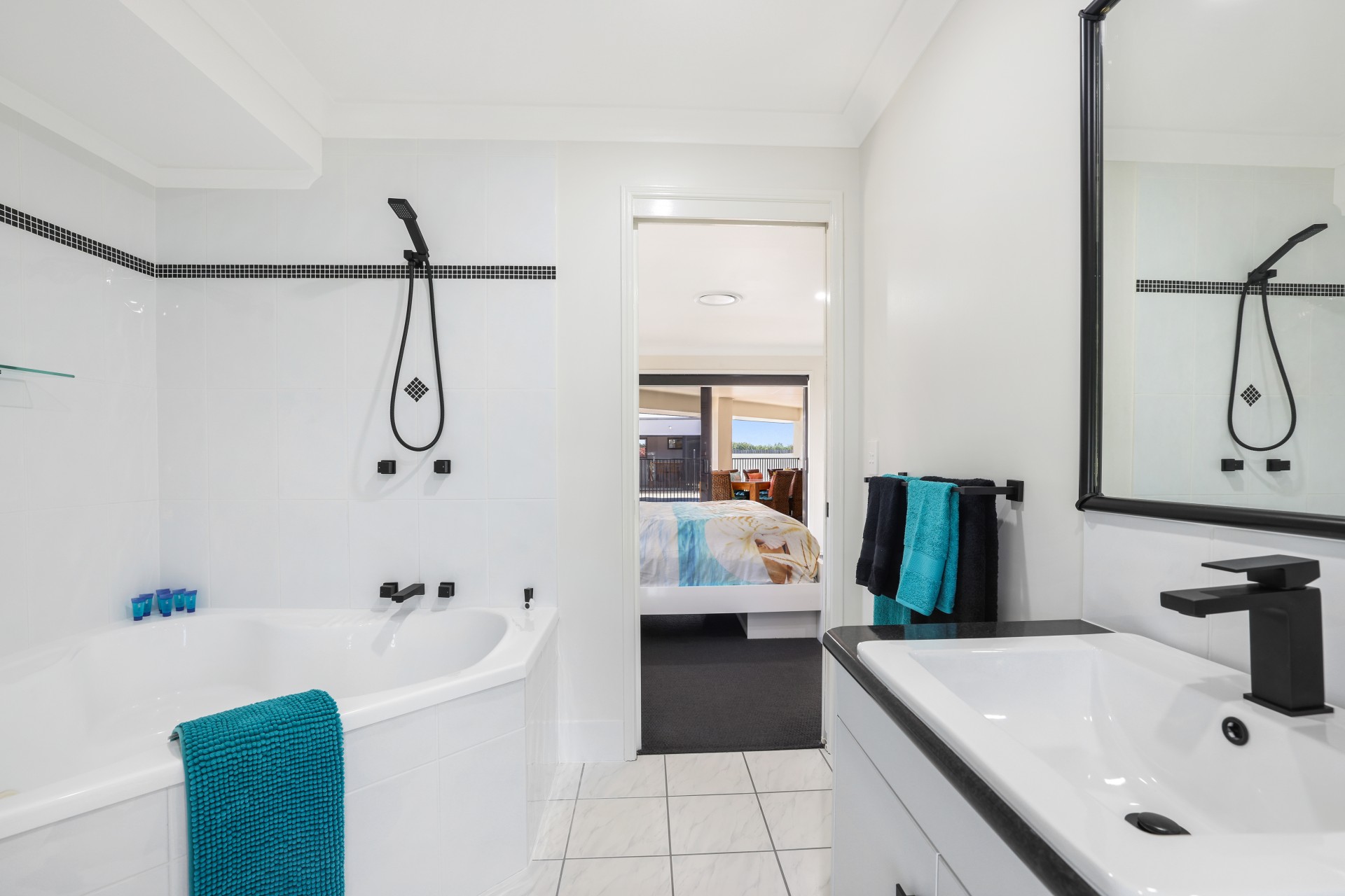 - Well appointed Master bedroom with a split system A/C (if not using the ducted), extra large sliding door, private walk-in robe, sleekly renovated ensuite with corner spa