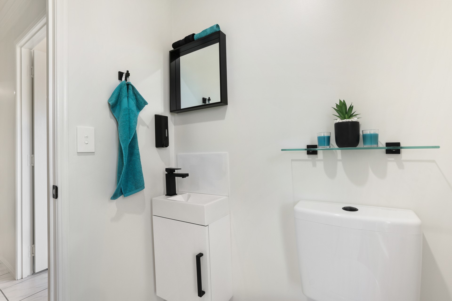 - Family-sized bathroom, new square basin, square black shower head & matching tapware, etc