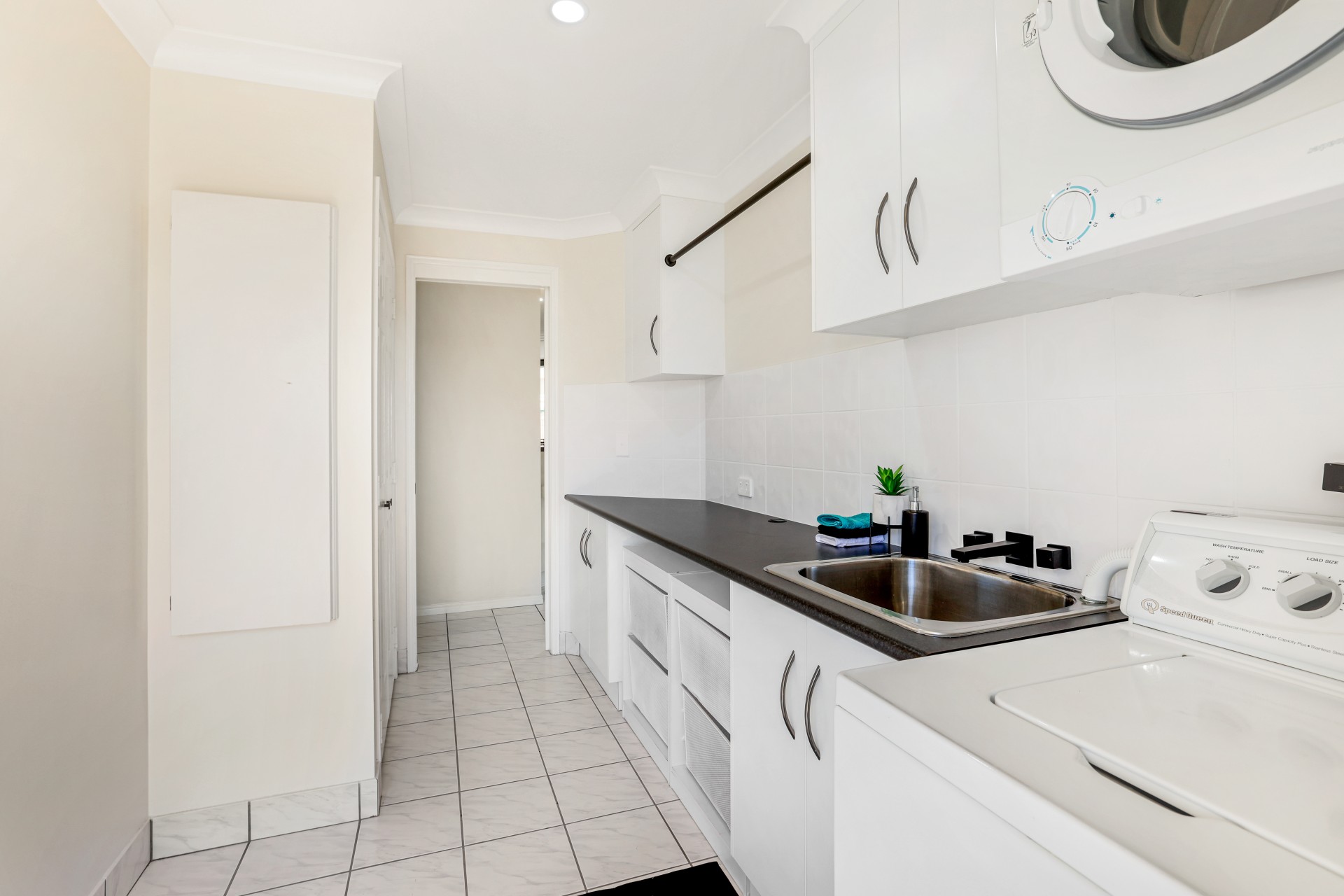 - Laundry has plenty of cupboards & bench space with a wall-mounted 'Robinhood Easy Iron'