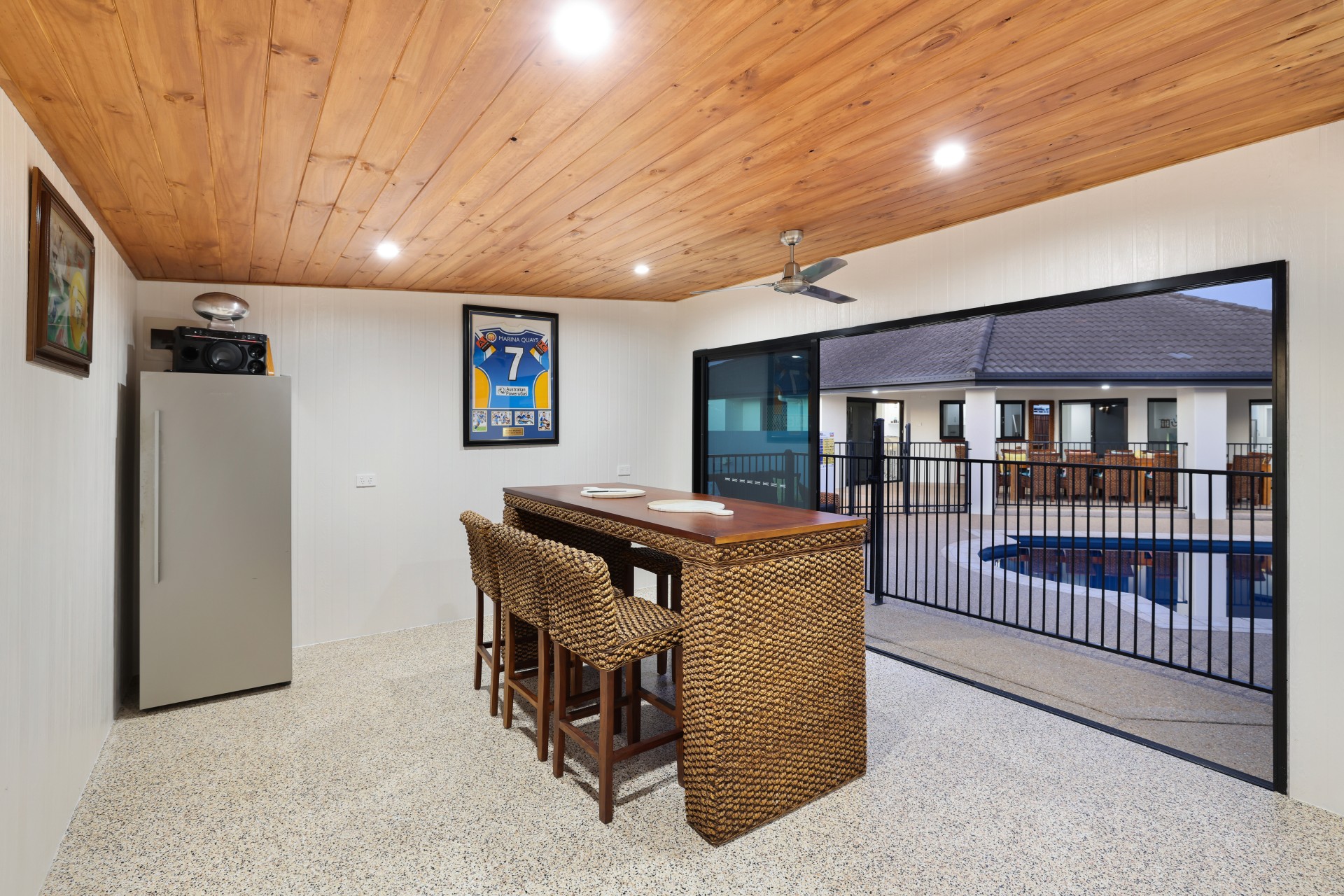 - 9m x 4m Pool-house, professionally designed, built locally, beautifully finished with epoxy resin flooring, timber ceiling with a generous triple stacker door & servery window/bar