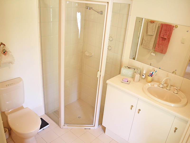 The main bathroom features a shower, bath and heated lighting with a separate toilet and large built-in robe for storing all your linen.