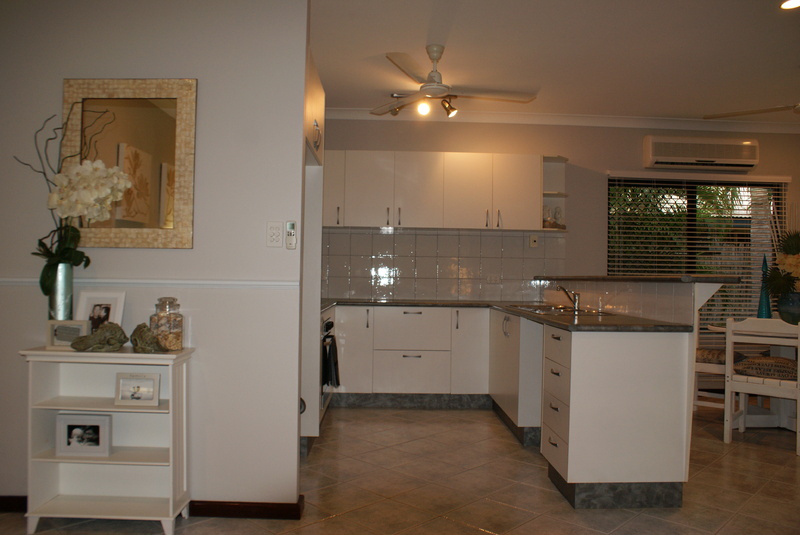 The open plan living and kitchen area is located at the back of the premise; opening onto the beautiful varandah and outdoor area. This makes it perfect for intimate entertaining with family and friends. The established reticulated tropical garden and beautifully manicured lawns will whisk you away to exotic lands.