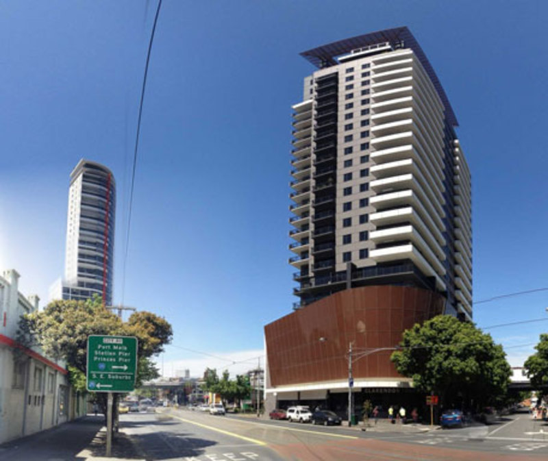 This luxury corner apartment boosts stunning views across the city and the bay, the spacious lounge/dining area flows out to a generous SW-facing undercover balcony with clear views over low-rise neighboring suburbs to the blue waters of Port Philip Bay. A stylish kitchen features timber floors and cabinetry, large stone bench top and quality Blanco appliances. Branching off from the entrance and allowing for house-like seclusion, the corridor leads to two private double bedrooms with built-in robes and a central bathroom with floor-to-ceiling tiles.