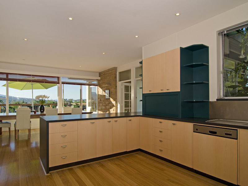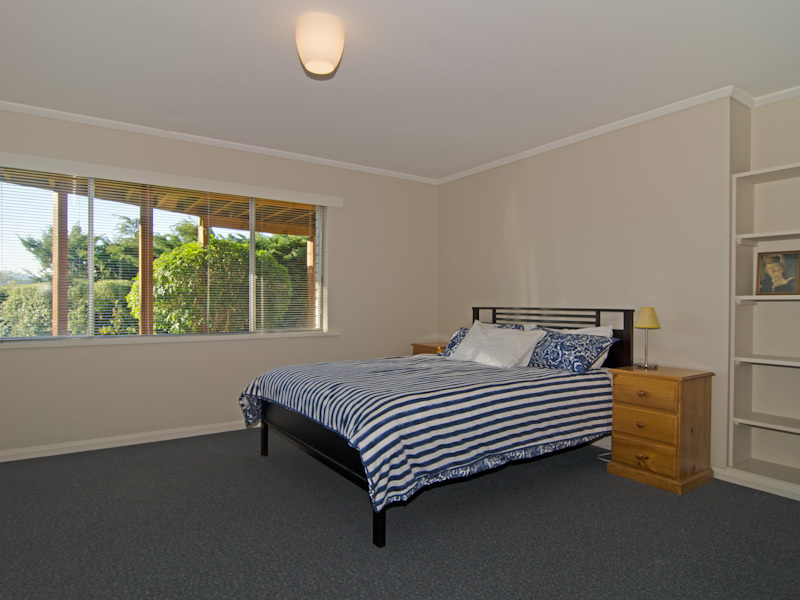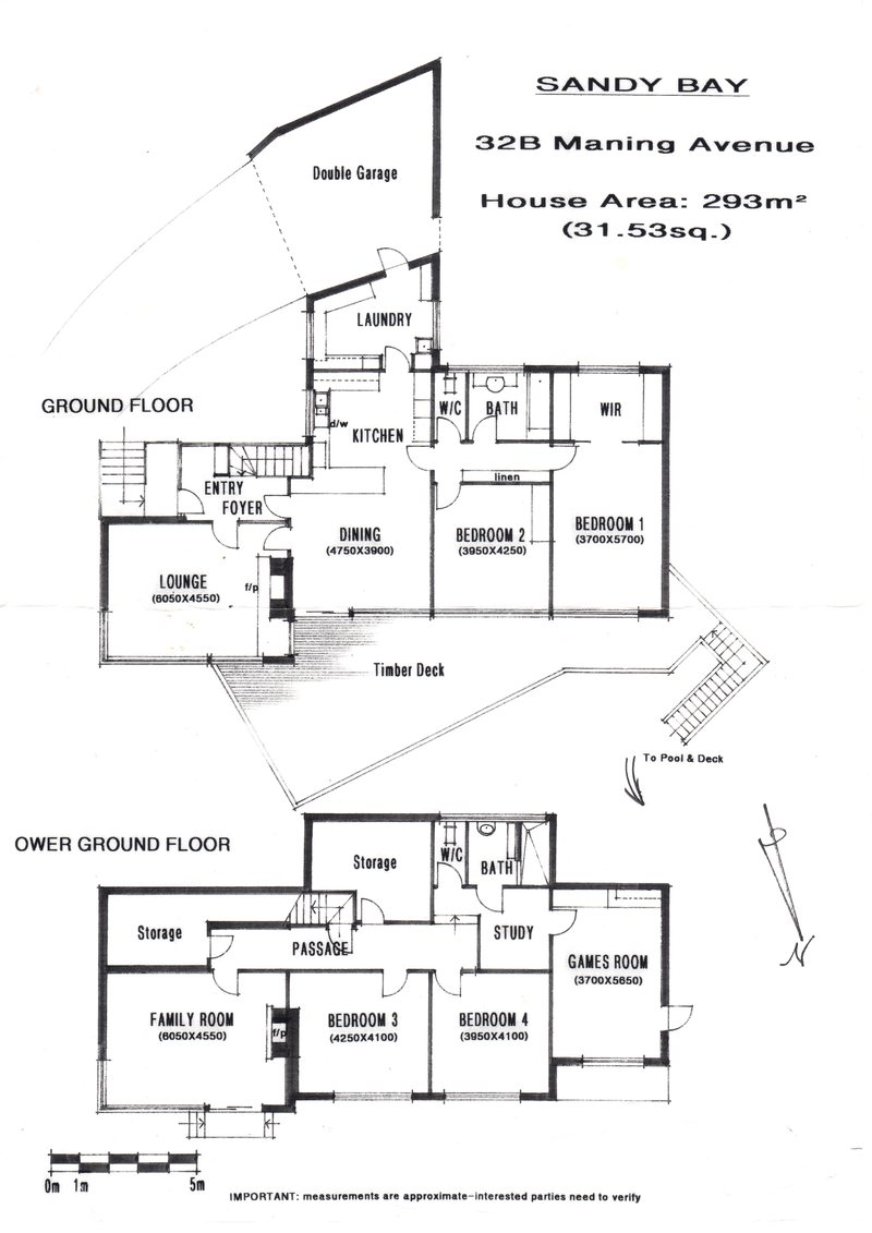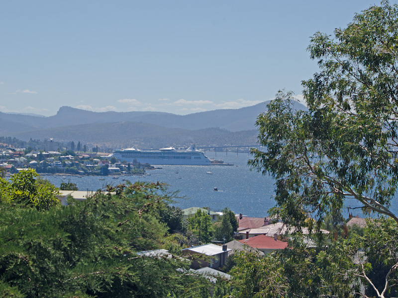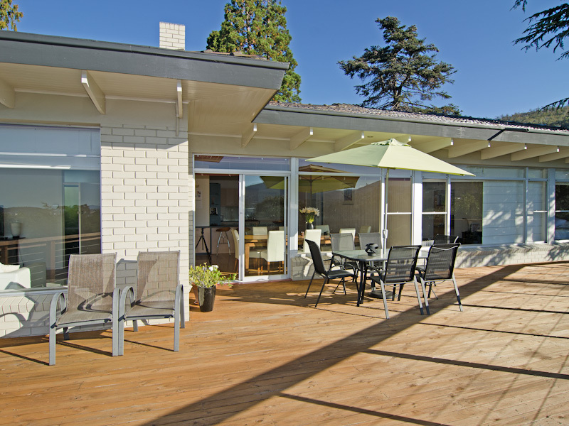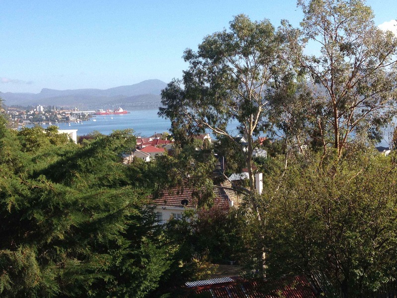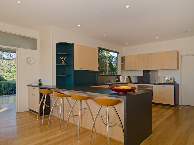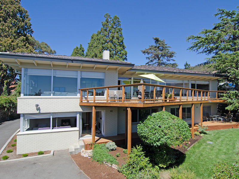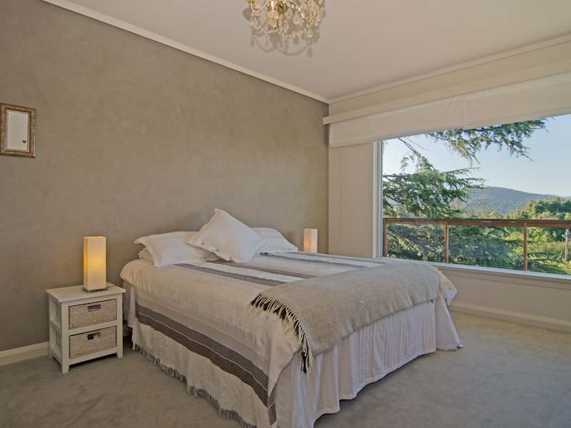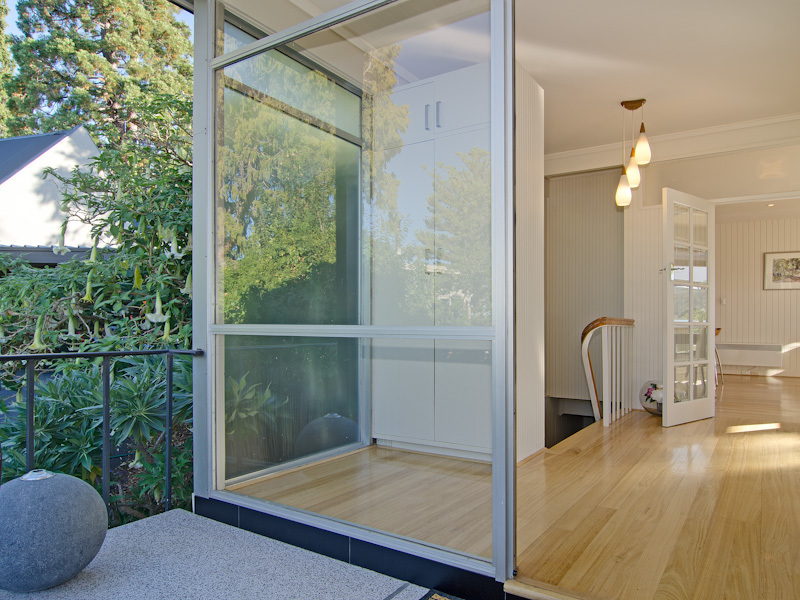 Up a private internal driveway, the north-facing house has light–filled rooms and large decks overlooking a tranquil and level garden surrounding a pool. It enjoys 270 degree vista of the river, harbour and the Mountain filtered through trees.