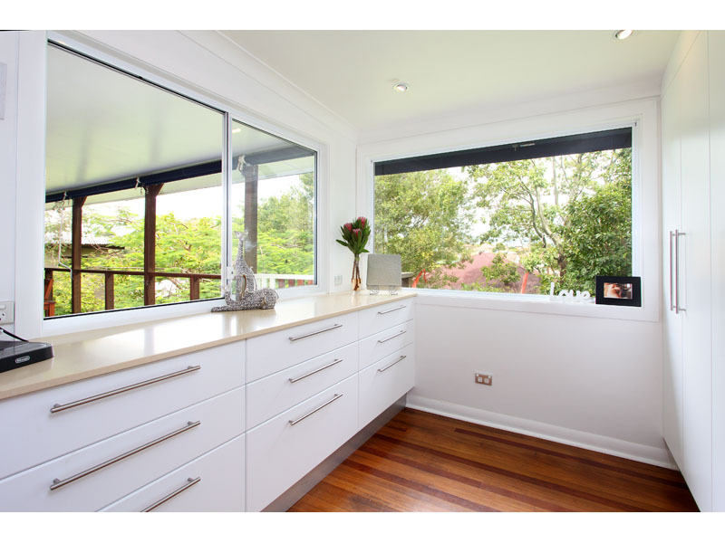 The two additonal bedrooms each with built in wardrobes and ceiling fans enjoy beautiful french door access to the undercover rear deck, which is perfect for entertaining with it's outlook to the back garden, the servery from the kitchen and a guests second toilet.