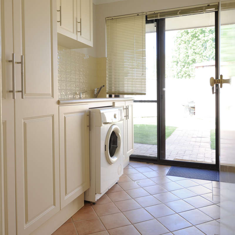 2. Renovated kitchen and laundry with Corian bench tops and stainless steel appliances.