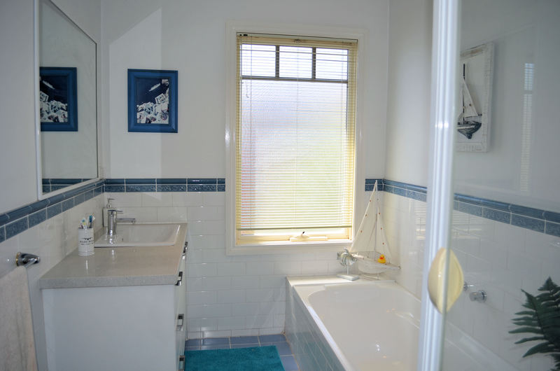 Downstairs consists of formal lounge, through to open plan kitchen, family-dinning room. From family room, step into rear north facing, paved entertaining yard. Modern equipped kitchen with stainless steel appliances, including dishwasher. Extra powder room and separate laundry, completes downstairs.