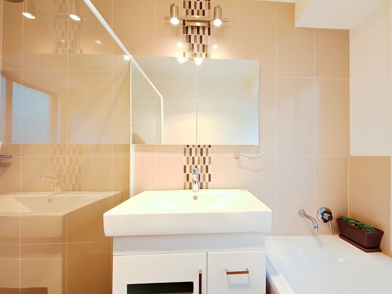 Sparkling new bathroom, with luxurious deep bath and rainmaker shower head, the perfect way to wash away the work day.