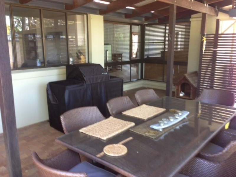 Large entertainment area for all year outdoor dining which stretches from the house to the pool.