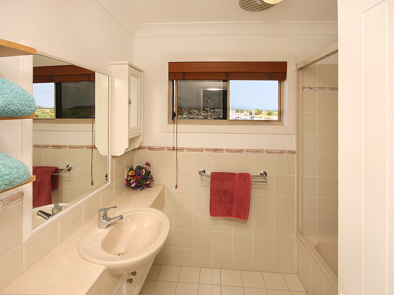 The north facing main bedroom opens to a balcony overlooking the water with extensive views of the harbour and hinterland. The spacious en-suite bathroom has windows on three sides, spa bath, twin vanity and a walk-in wardrobe.