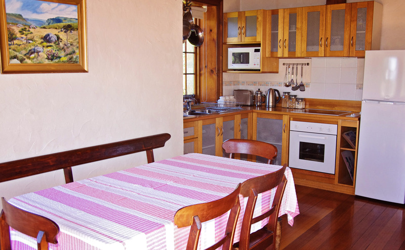 Heritage Cottage built from beautiful sandstone, has two bedrooms, two bathrooms, a family size main bathroom and an en-suite off the master bedroom, both with walk in showers. The kitchen is large with an electric stove, oven, fridge and microwave. The dining area has large windows framing the spectacular scenery.
