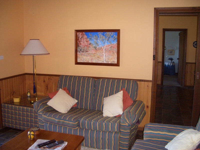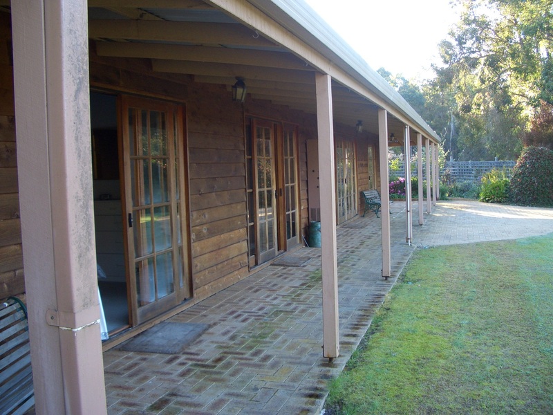 Accommodation includes entrance, lounge, dining, family, kitchen, three bedrooms, ensuite, walk-in robe, bathroom, laundry, toilet and store room. Floors are of slate tile, there is a slow combustion fire and reverse cycle air conditioning units. The house is about 350m2, including verandahs on all sides and car port, all contained under the one roof (colour bond). Constructed in 1990s, concrete slab with timber frame, treated pine weatherboard finish.